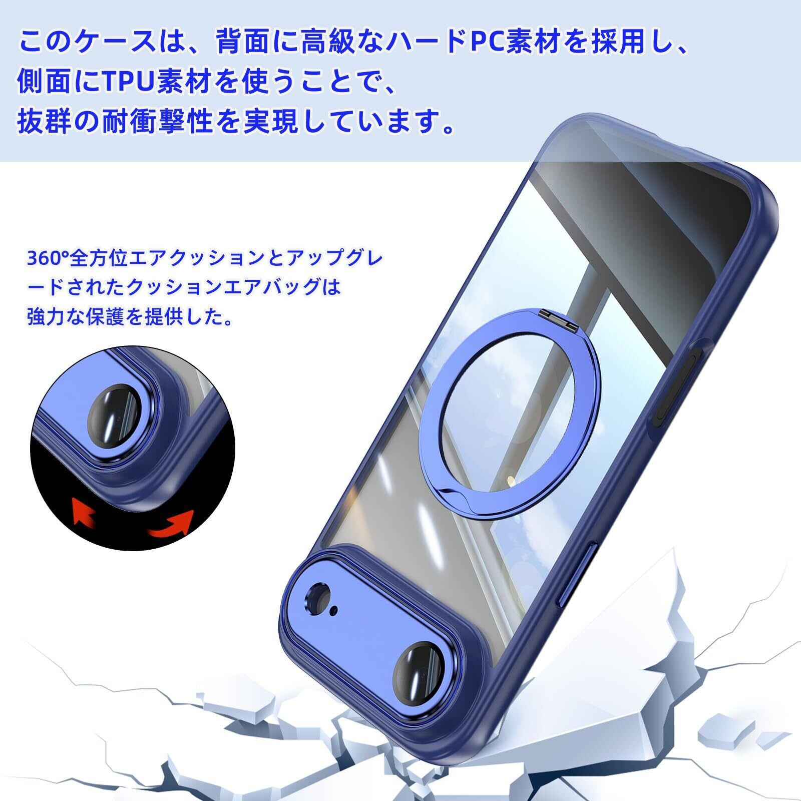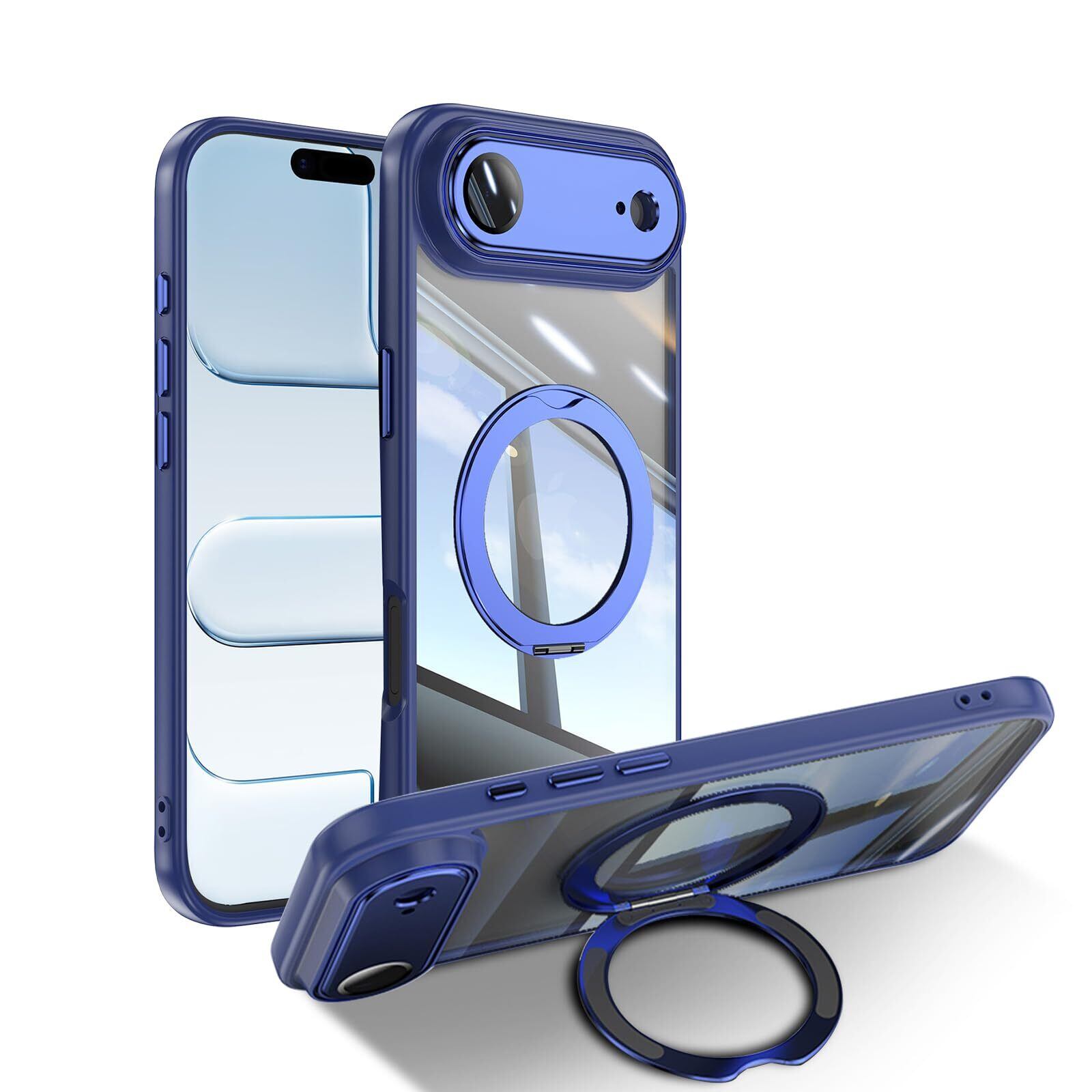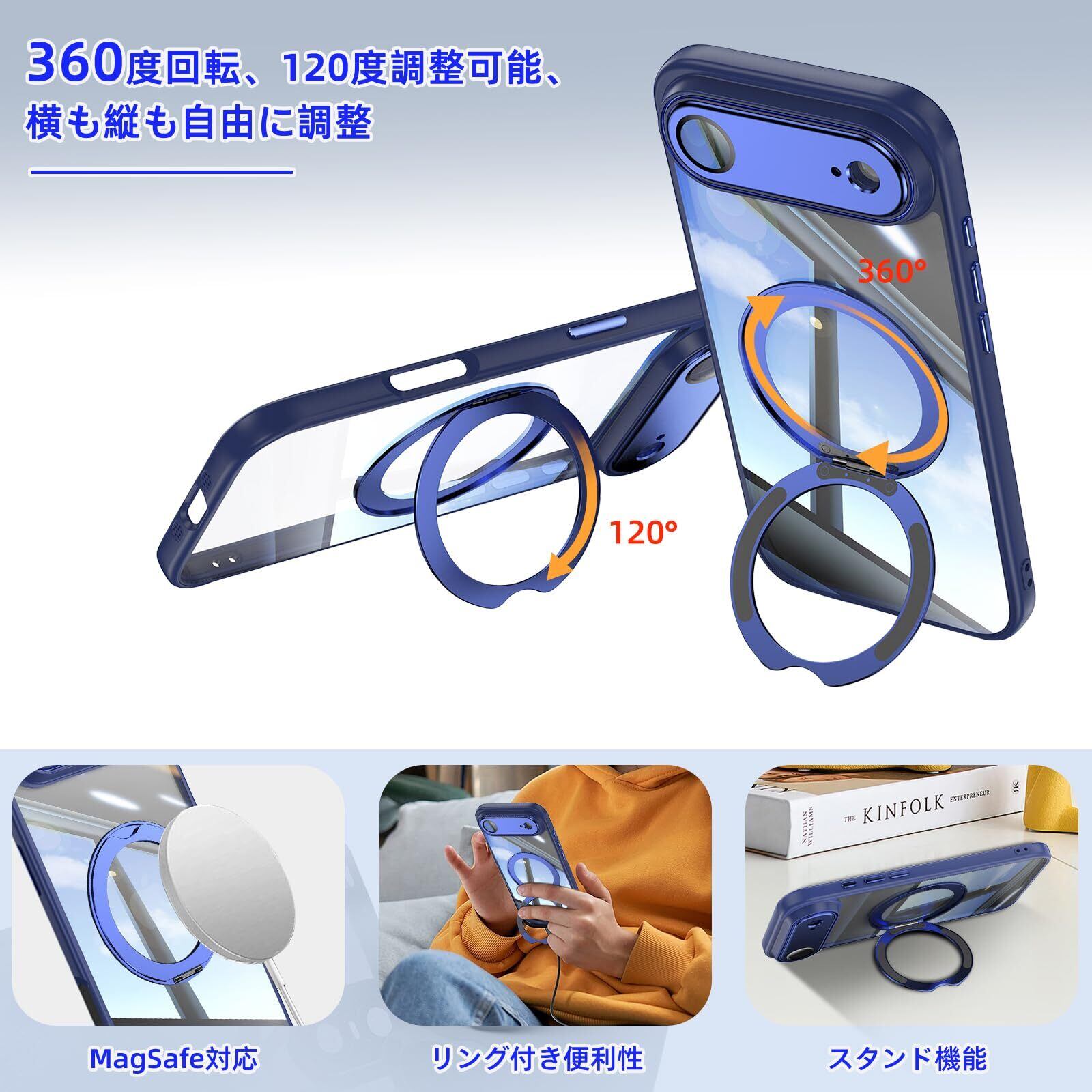 [ShinKin] スマホケース iPhone 17 Air 用 ケース カバー 透明PC + TPU素材 ケース リング付き カバー スタンド機能 スマホケース 透明レンズフィルム保護機能付き 強化された保護 携帯電話のレンズフィルム 軽量 耐衝撃 擦り傷防止 落下防止 車載ホルダー 360°回転 ケース iPhone 17 Air 用 (ブルー)
