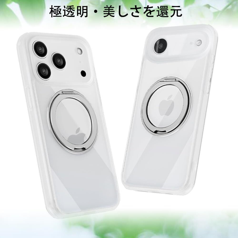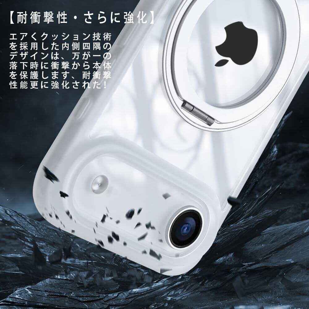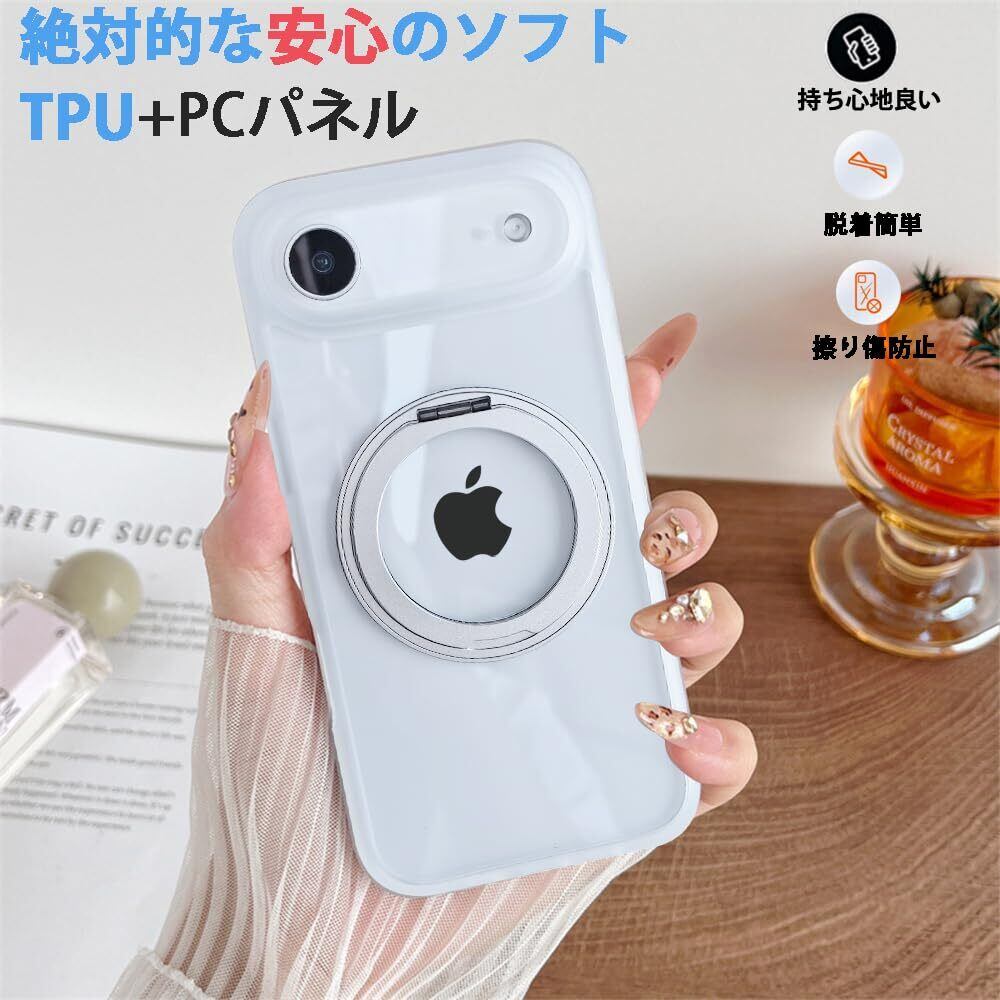 スマホケース 対応 iPhone Airケース Magsafe対応 クリア リング付き ワイヤレス充電 スタンド機能 衝撃吸収 ブランド 磁気 ハードケース PCパネル+TPUバンパー 対応 アイフォンAir 透明カバー (ホワイト)