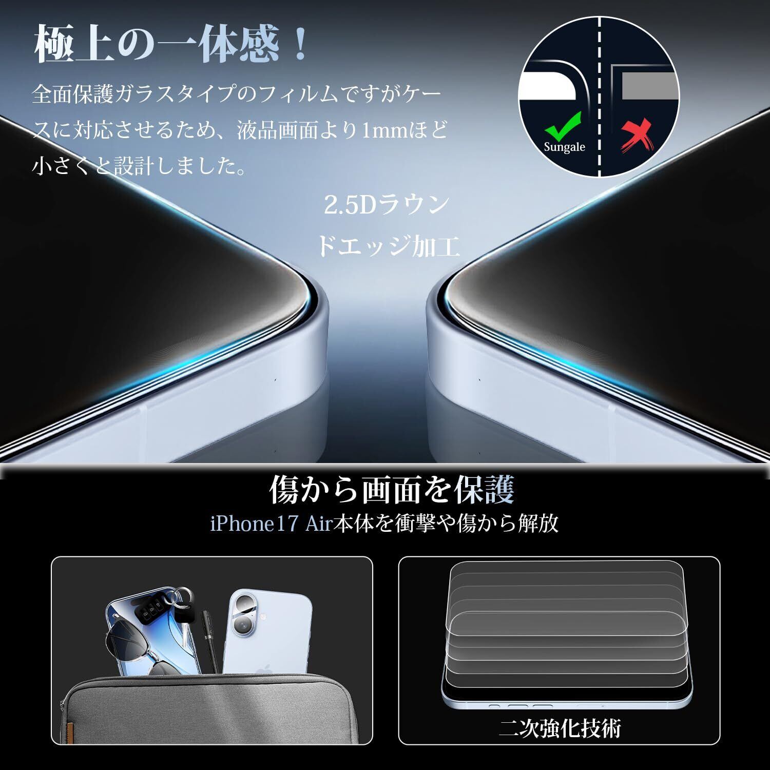Sungale iPhone 17 ガラスフィルム 強化ガラス ガイド枠付き いPhone17 フィルム(2枚)+iPhone17 カメラ保護(2枚)アイフォン17 保護フィルム カメラフィルム 日本旭硝子製 硬度9H 防塵 高透過率 液晶保護 カメラ保護カバー いPhone17 対応 フィルム