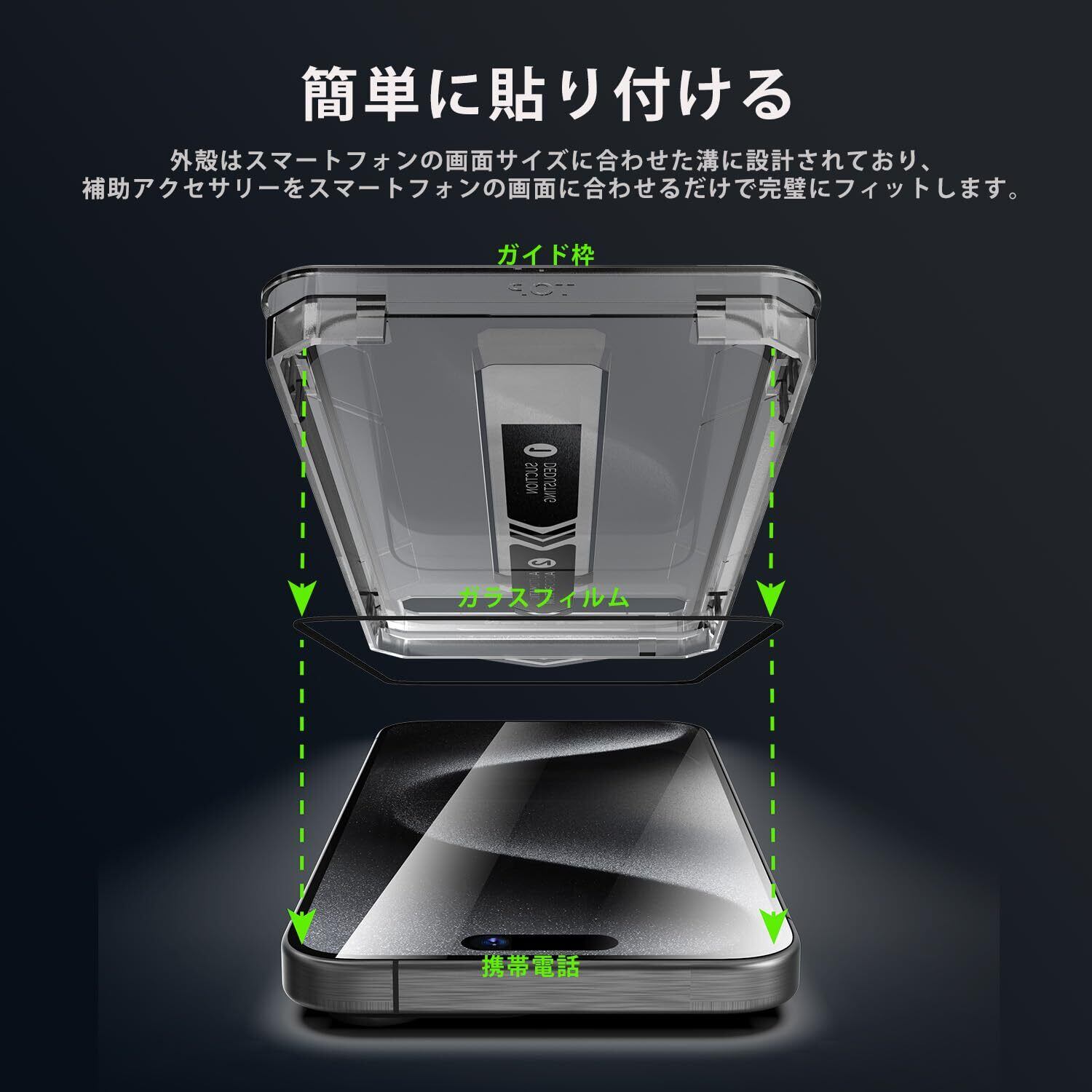 3.✨ ガイド枠付き&自動吸着で 初心者でもピタリ気泡レス!: 付属の専用アライメントフレーム(ガイド枠) で、対応iPhone 17用のに簡単かつ正確に設置可能。自動吸着技術が気泡を自動的に追い出し、面倒な調整なしで全面密着。初心者でもストレスフリーで簡単に貼れる、気泡レスの仕上がりを実現します。