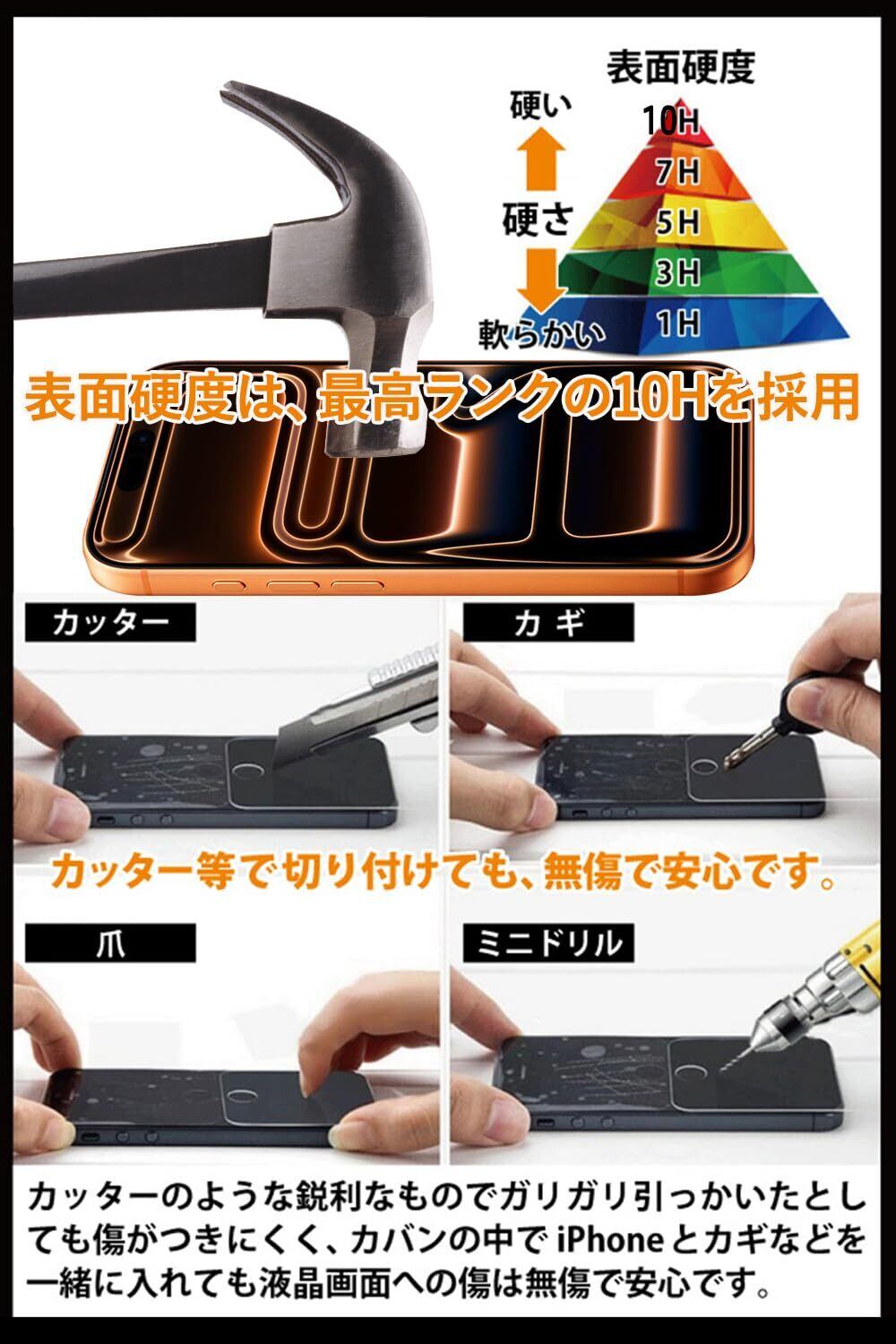 特徴 耐衝撃性, 10H 表面硬度, アンチグレア, 耐汚性, のぞき見防止