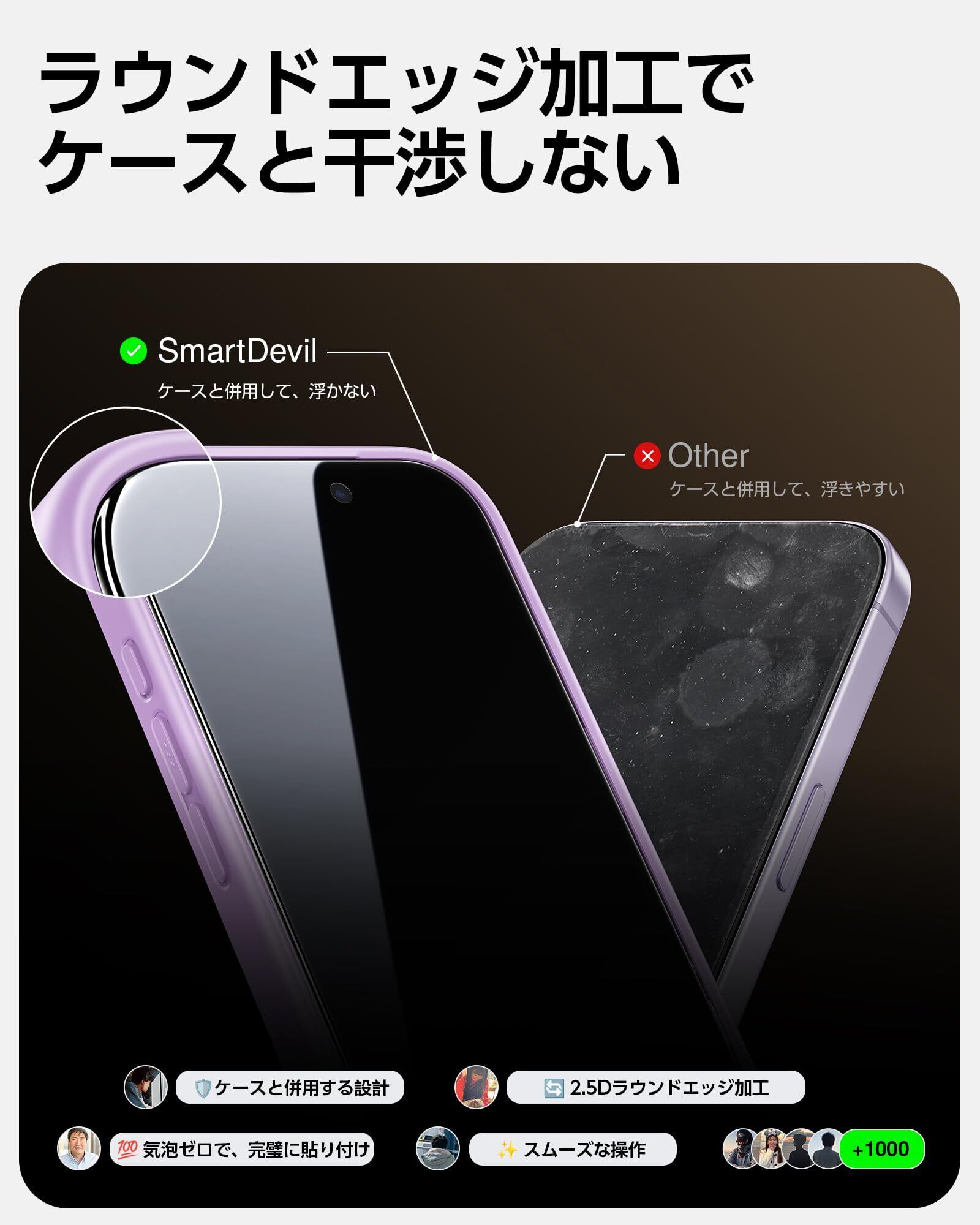 【覗き見防止】SmartDevil iPhone17 用ガラスフィルム 2枚セット プライバシー保護 ガイドボックス付き 貼り付け超簡単 自動除塵 米軍MIL規格 黒縁なし 落下保護 滑らかな手触り iPhone17対応指紋防止 保護フィルム