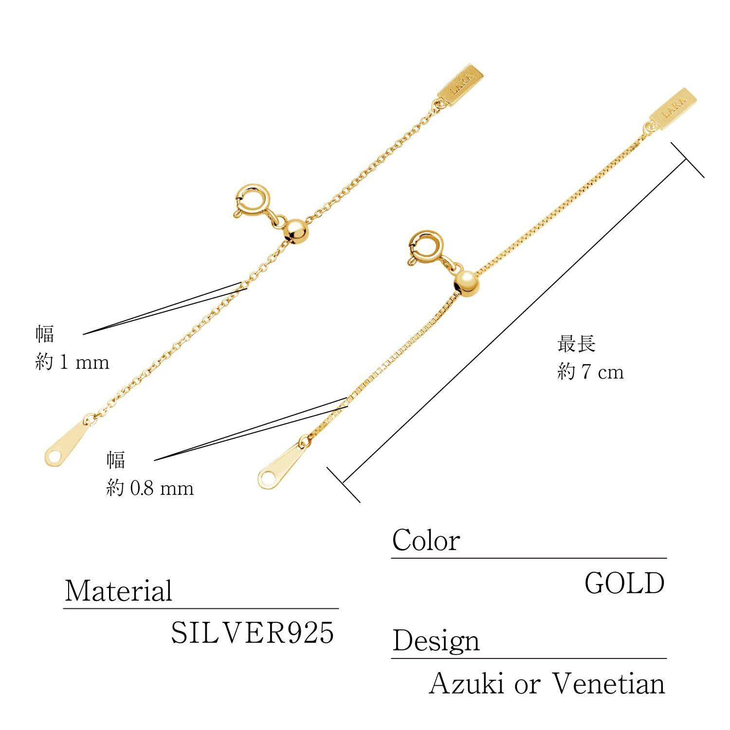 [ララクリスティー] スライド式 アジャスター チェーン あずき シルバー925 ゴールドコーティング 幅 約 1mm 最長7cm la03-0001-y