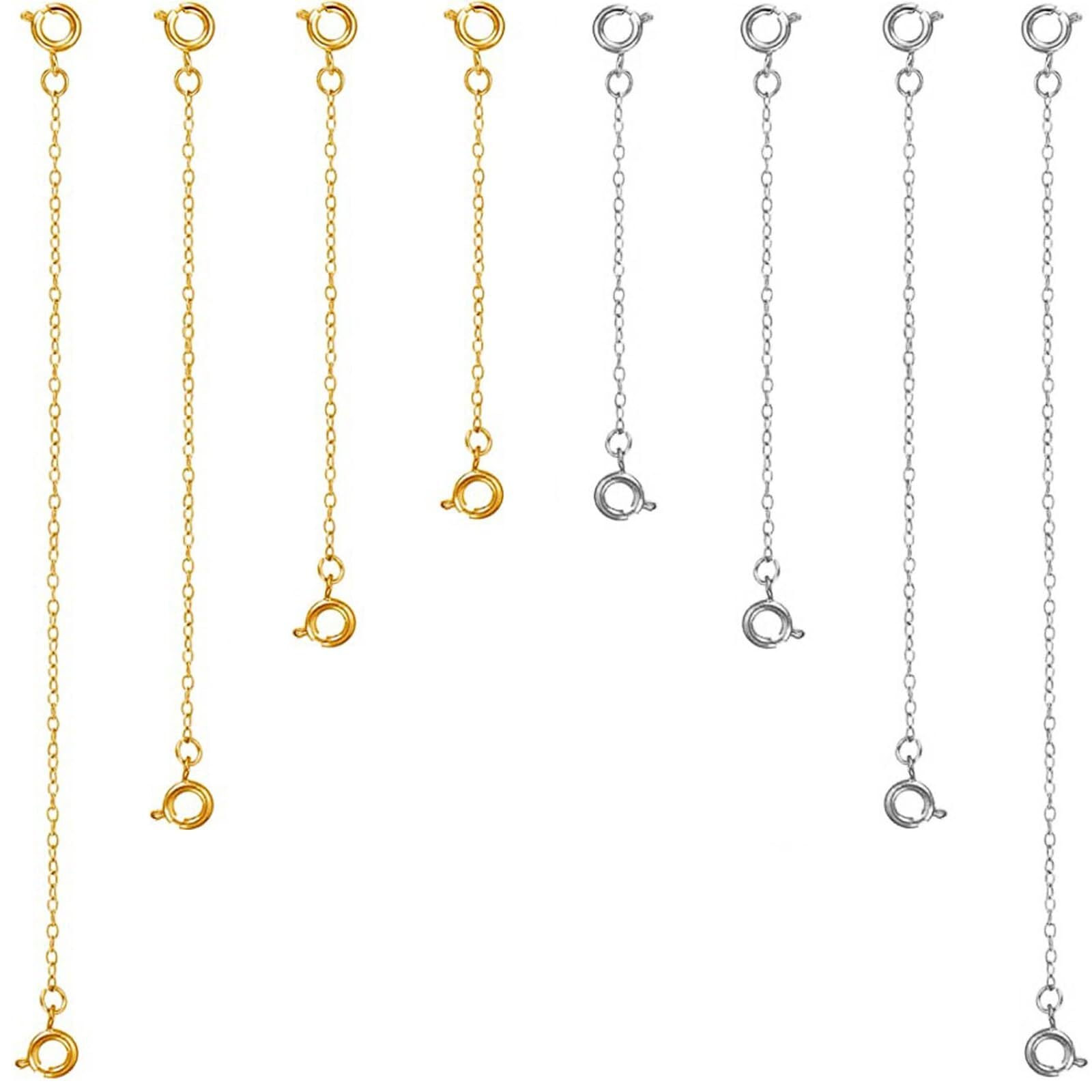 【仕様】:ネックレス延長チェーン8本、ゴールド4本、シルバー4本、サイズは5 cm、8 cm、10cm、15 cm。