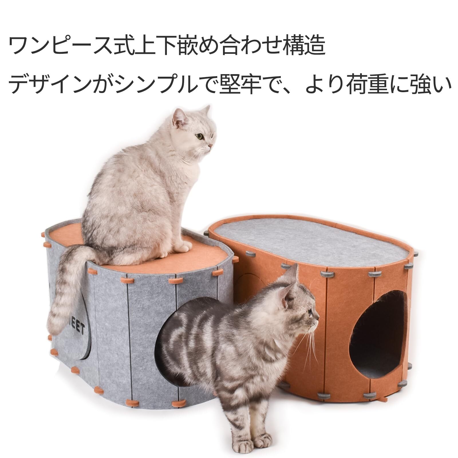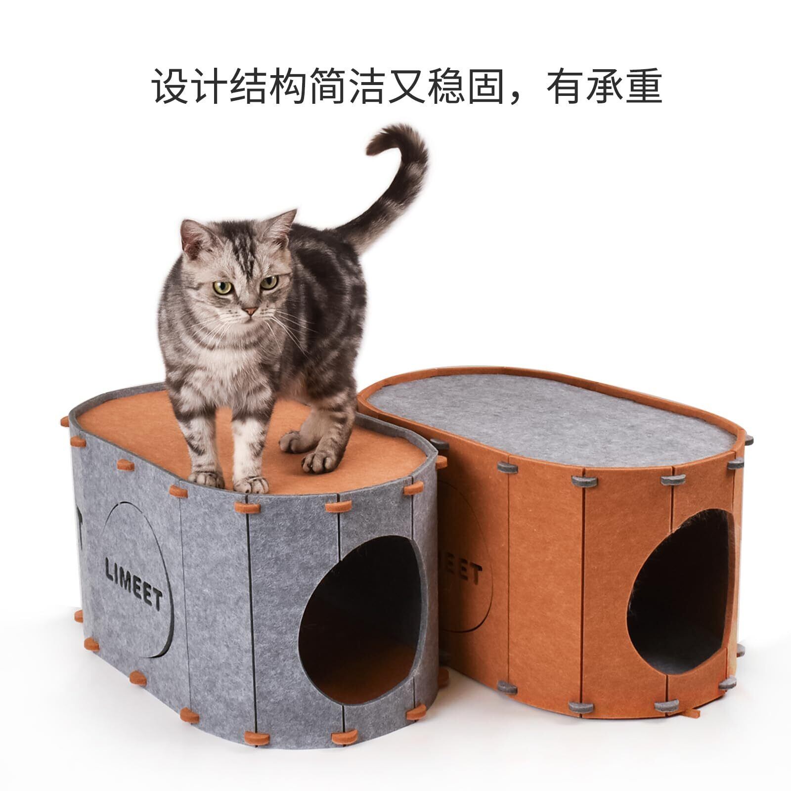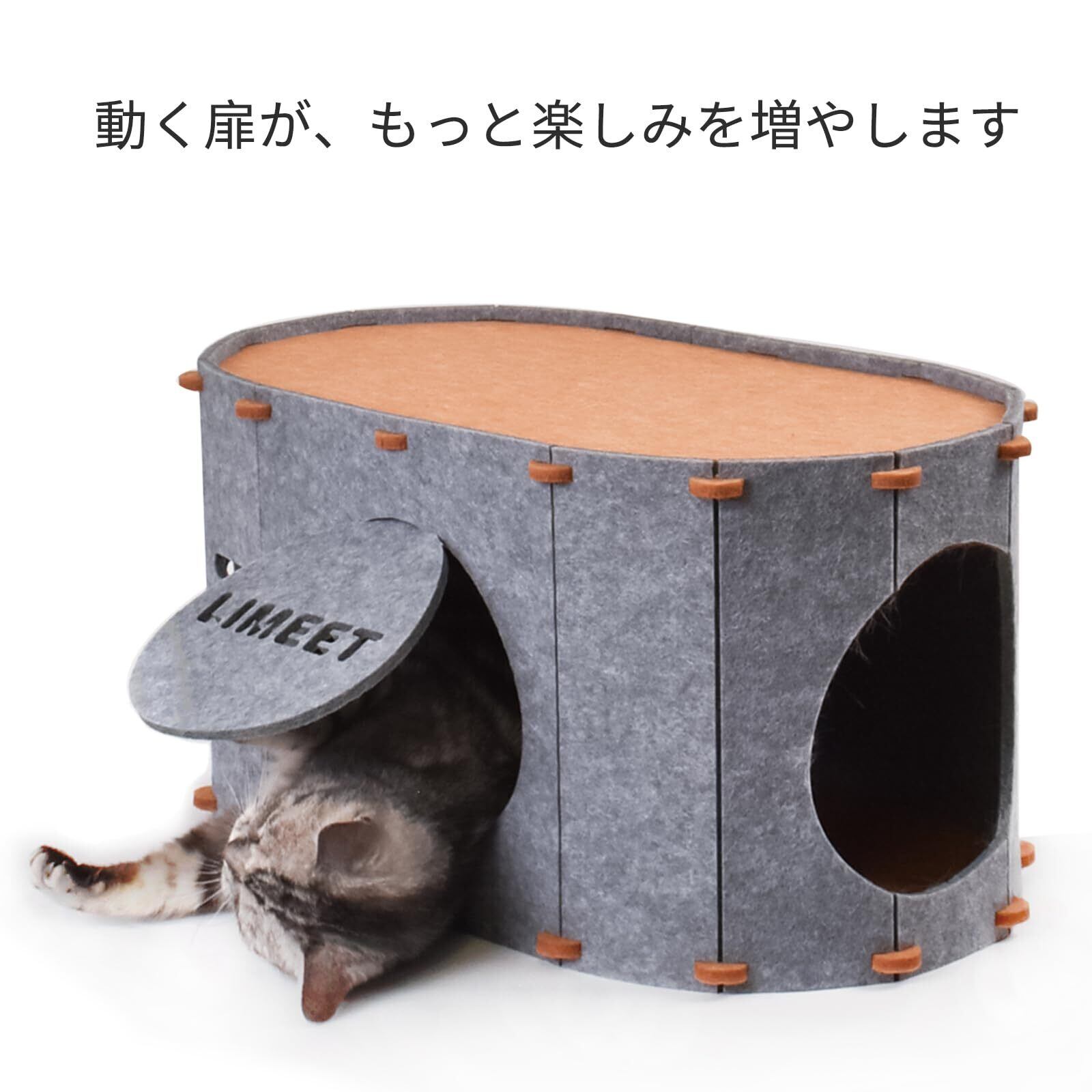 【遊び方】LIMEETPETは猫の自然な好奇心に基づいて開発されました。探索、穴掘り、かくれんぼなど、猫本来の本能を存分に発揮できます。複数の弾性穴が通行を容易にするように設計されています。複数を重ねるとキャットタワーになります。爪とぎ、キャットハウス、キャットトンネルとして機能し、猫ちゃんにさらなる楽しみを提供します。