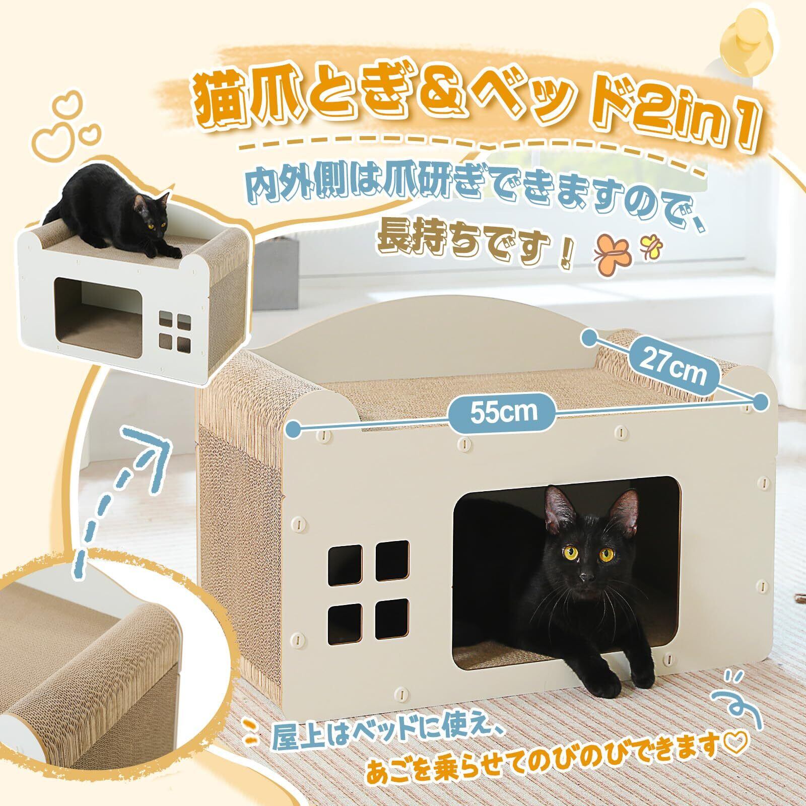 【猫爪とぎ&ネコベッド2in1】爪とぎだけでなく、猫ベッドとしても使えて、気軽に遊んだり、寝たり、ゆっくり休んだりできます。