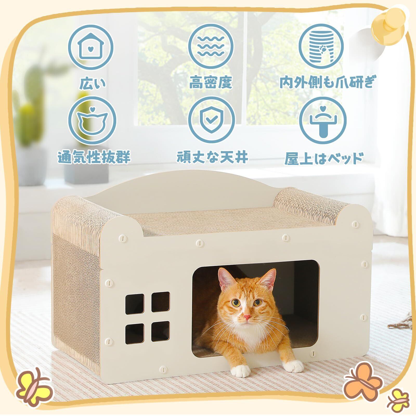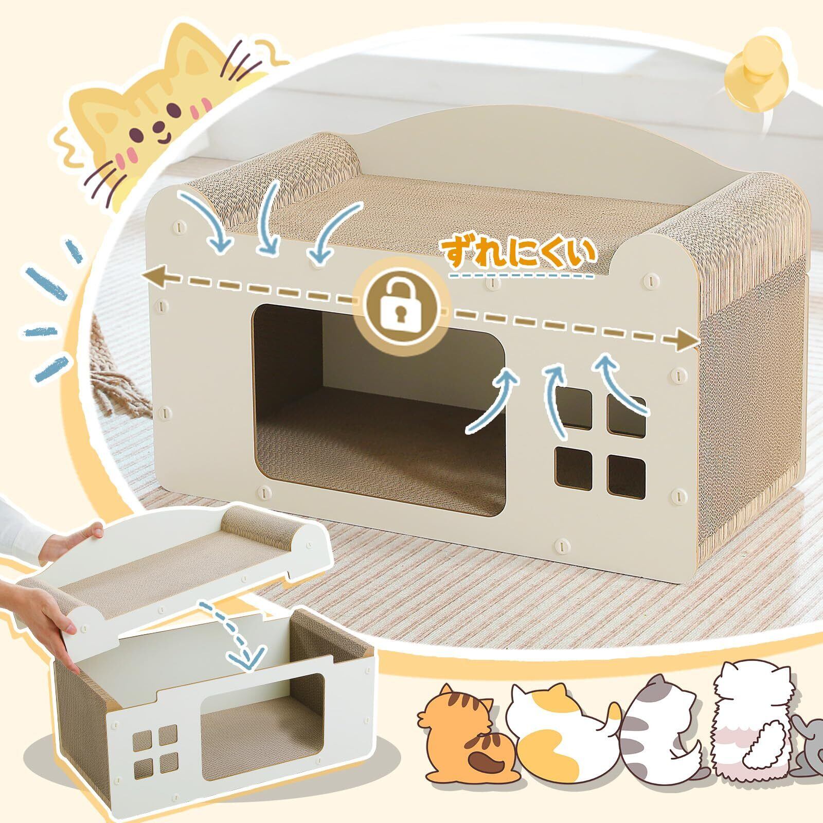 PAWZ Road 猫 爪研ぎハウス ダンボールハウス 耐荷重20kg 爪とぎ ネコベッド 屋根付き ドーム ソファ 隠れ家 木製 組み立て式 高密度 高強度 頑丈 紙箱 キャットハウス 猫用品 おもちゃ付属 コンパクト 省スペース 通気性いい カリカリ 人気 おしゃれ シンプル - ホワイト