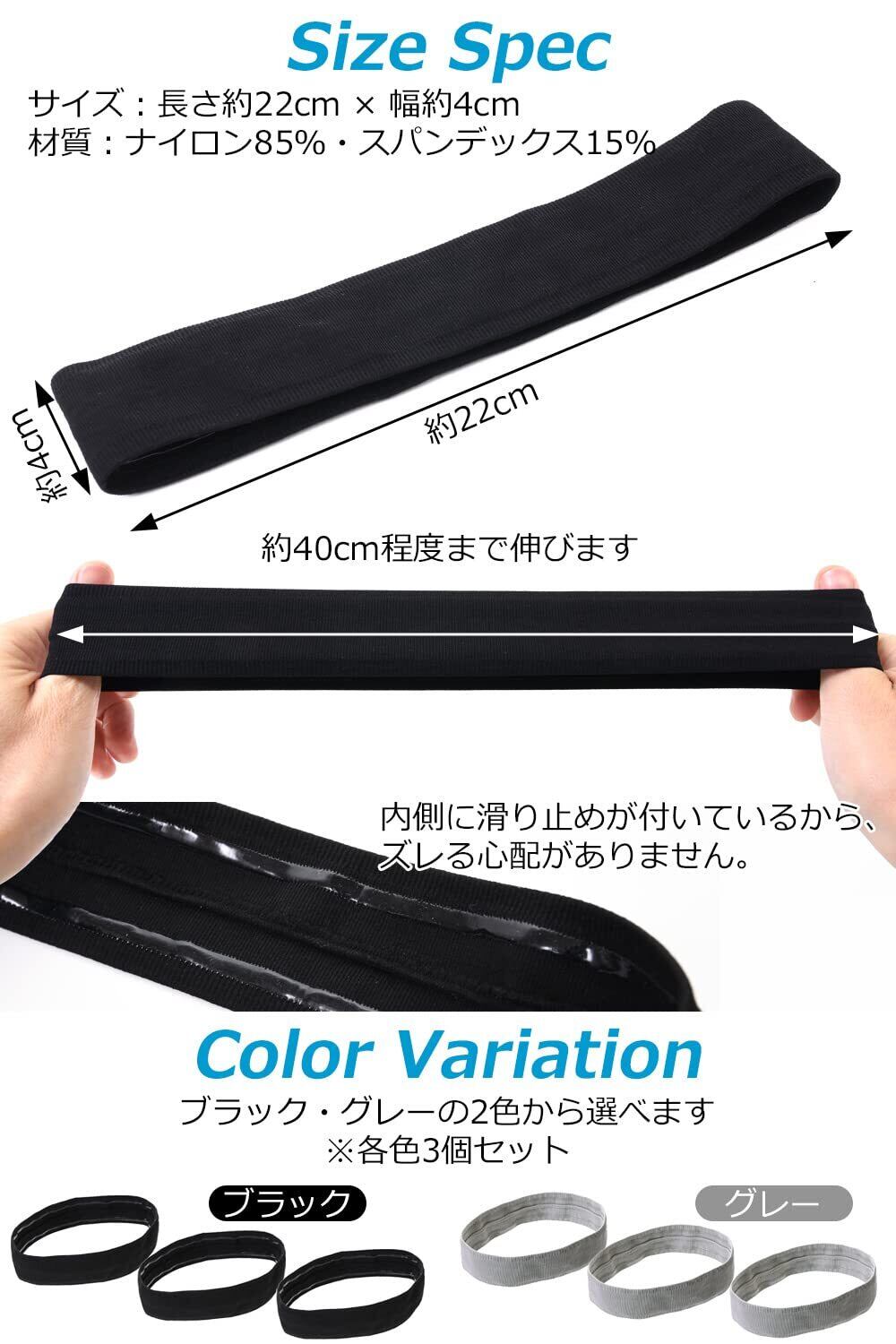 [エール] ヘアバンド スポーツ ヘッドバンド 汗止めバンド 吸汗速乾性 3本セット 「 洗顔用 髪留め としても!」 (ブラック)