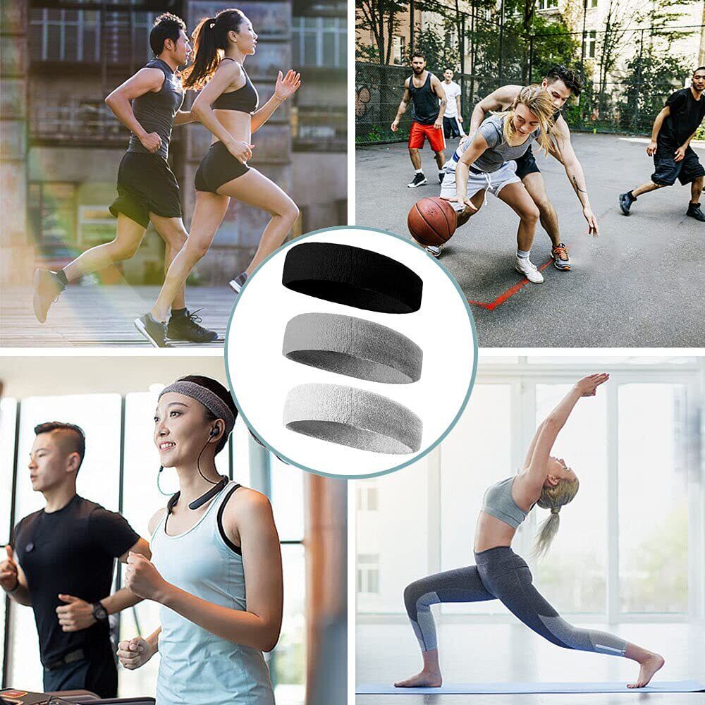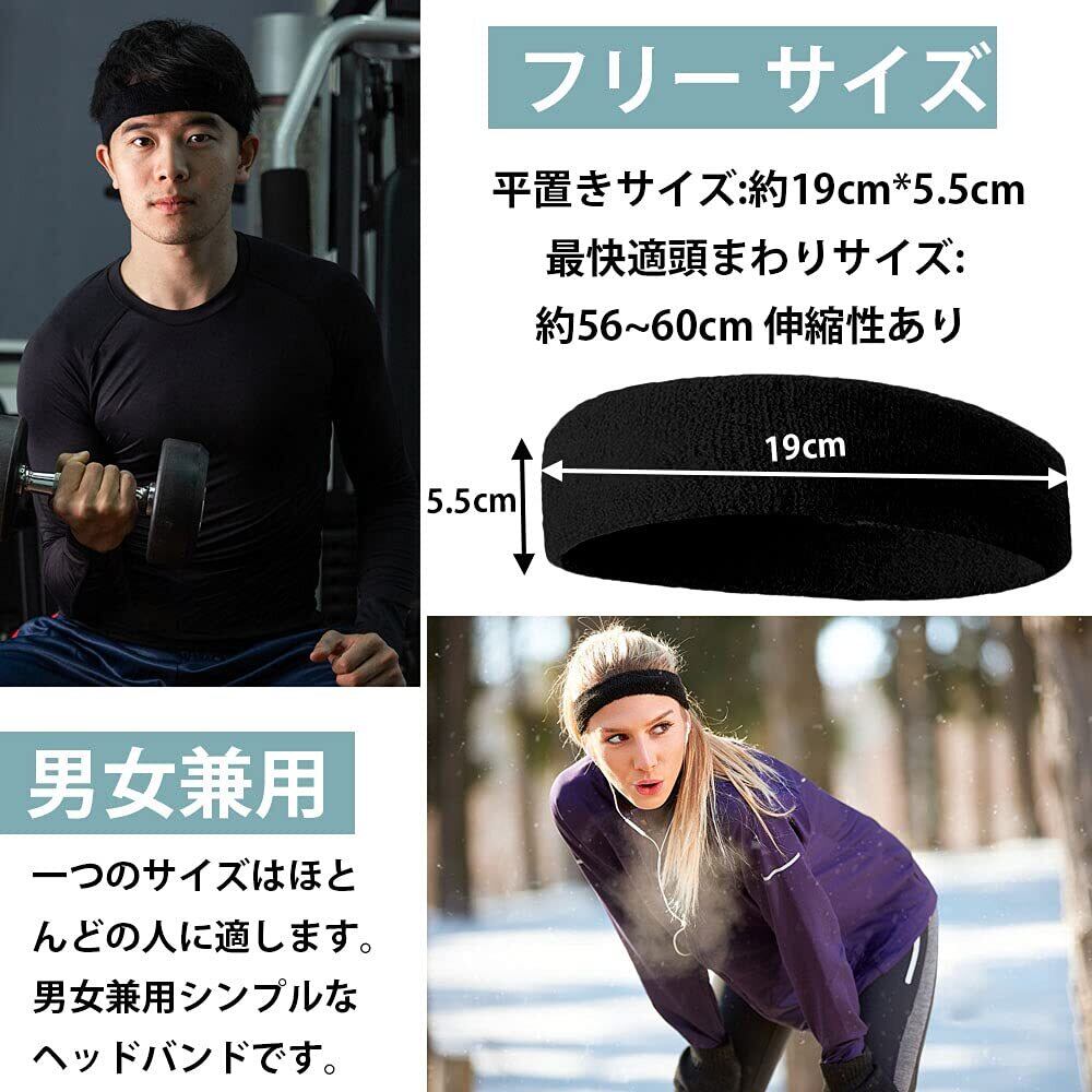 ヘッドバンド ヘアバンド 汗止め コットン素材 通気性 伸縮性 吸汗速乾 抗菌防臭 無地 髪留めらかい スポーツターバン 肌触りが柔らかい ランニング ダンス ヨガ ジョギング 男女兼用 (ブラック+グレー+ホワイト)