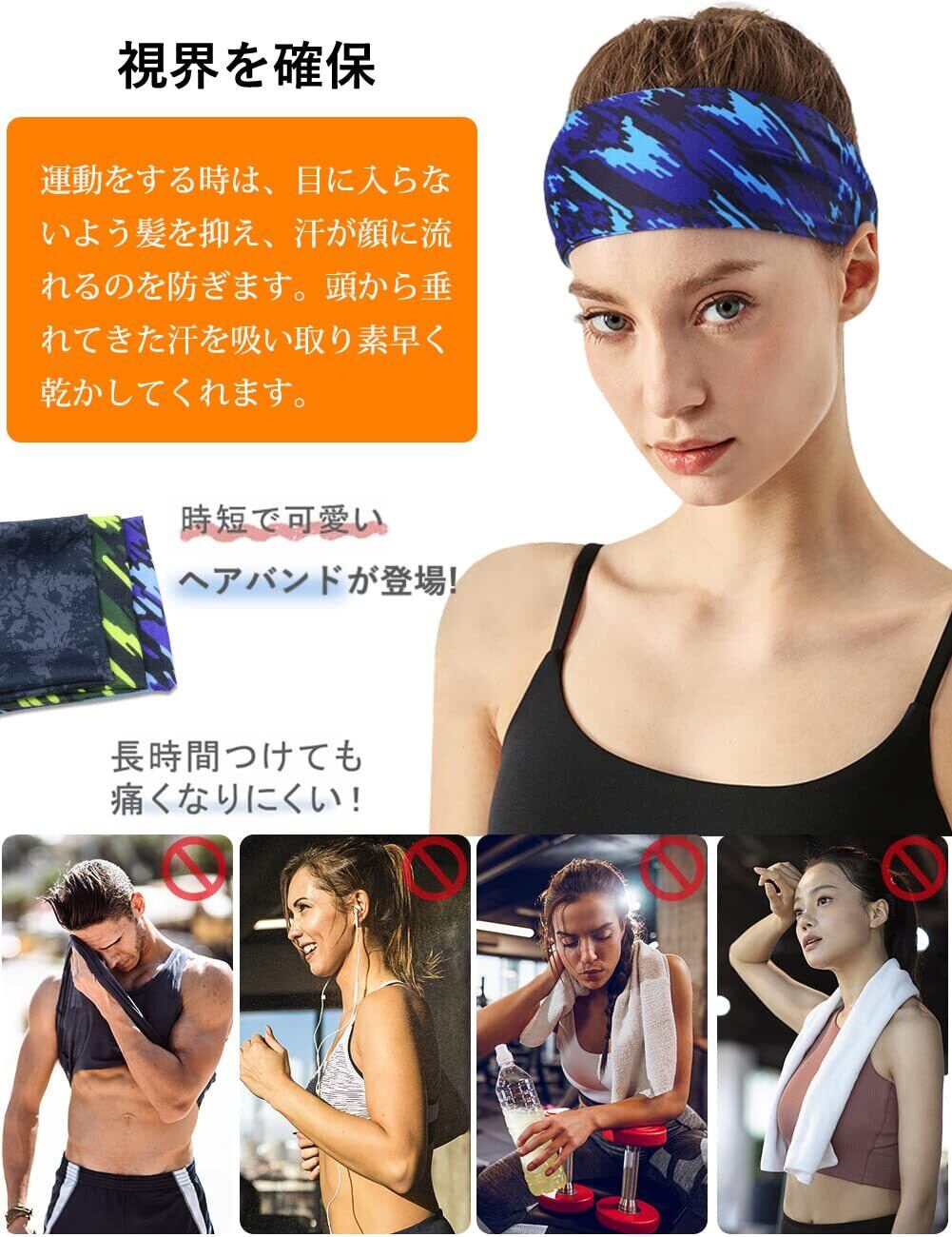 【 肌触り抜群&高効率汗止め】このヘアバンドは、タッチの快適感を与え、運動するときは、汗を吸収発散し、髪を抑えて視界をクリアにします。吸汗性に優れ、額から目に汗が流れるのを防ぎ、スポーツを楽しむことができます。暑い条件下で汗の吸収・発散を促す、超軽量の幅の狭いヘッドバンドです。ヘアバンドのヘッド部分を大きくとっているので自分好みの使い方が可能です。