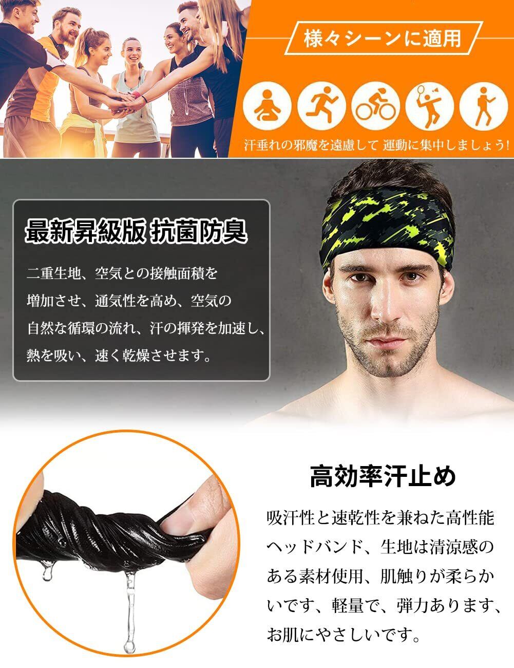 【最新昇級版 抗菌防臭】ヘアバンドはスケッチのデザイン、様々なカジュアルウェアを自由にコーディネートできます。二重生地、空気との接触面積を増加させ、通気性を高め、空気の自然な循環の流れ、汗の揮発を加速し、熱を吸い、速く乾燥させます。抗菌防臭効果がある、プロスポーツヘアバンド悩みを解決し、素材は薄く、一体感のあるデザインで肌にやさしい。洗濯しても長く使っていただけるタイプに!毛のクズが落ちない、ファッションと美しさヘアバンド メンズです。
