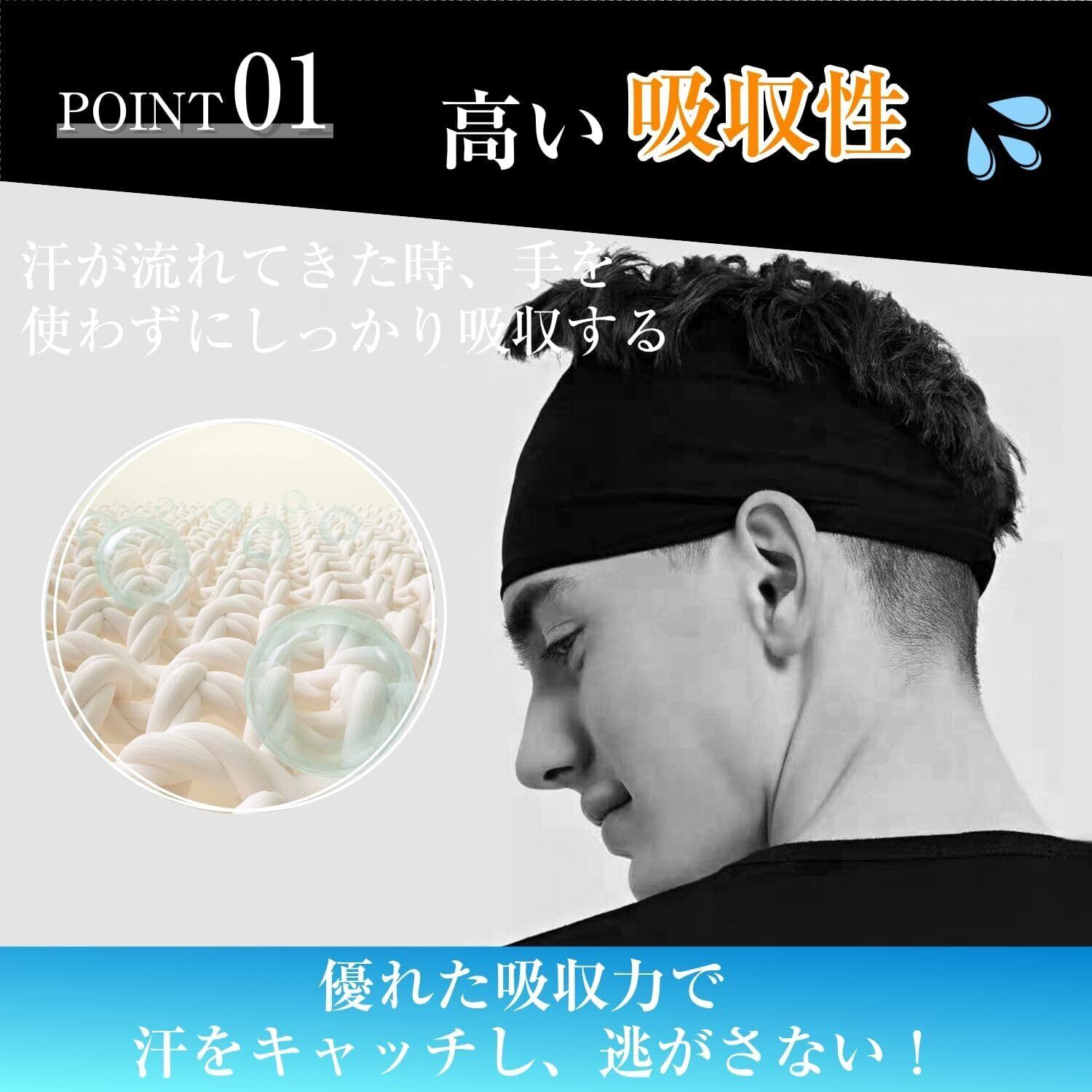 【幅広設計で安定したフィット感】幅広デザインにより額全体をやさしくカバーし、ズレにくい仕様。汗が目元に流れにくく、視界を妨げにくいため、スポーツや作業時も集中しやすい設計です。通気性のある素材で、蒸し暑い環境でも使いやすくなっています。サイズ:約23.5cm×約9.5cm(フリーサイズ)で頭囲45〜60cmに適応。