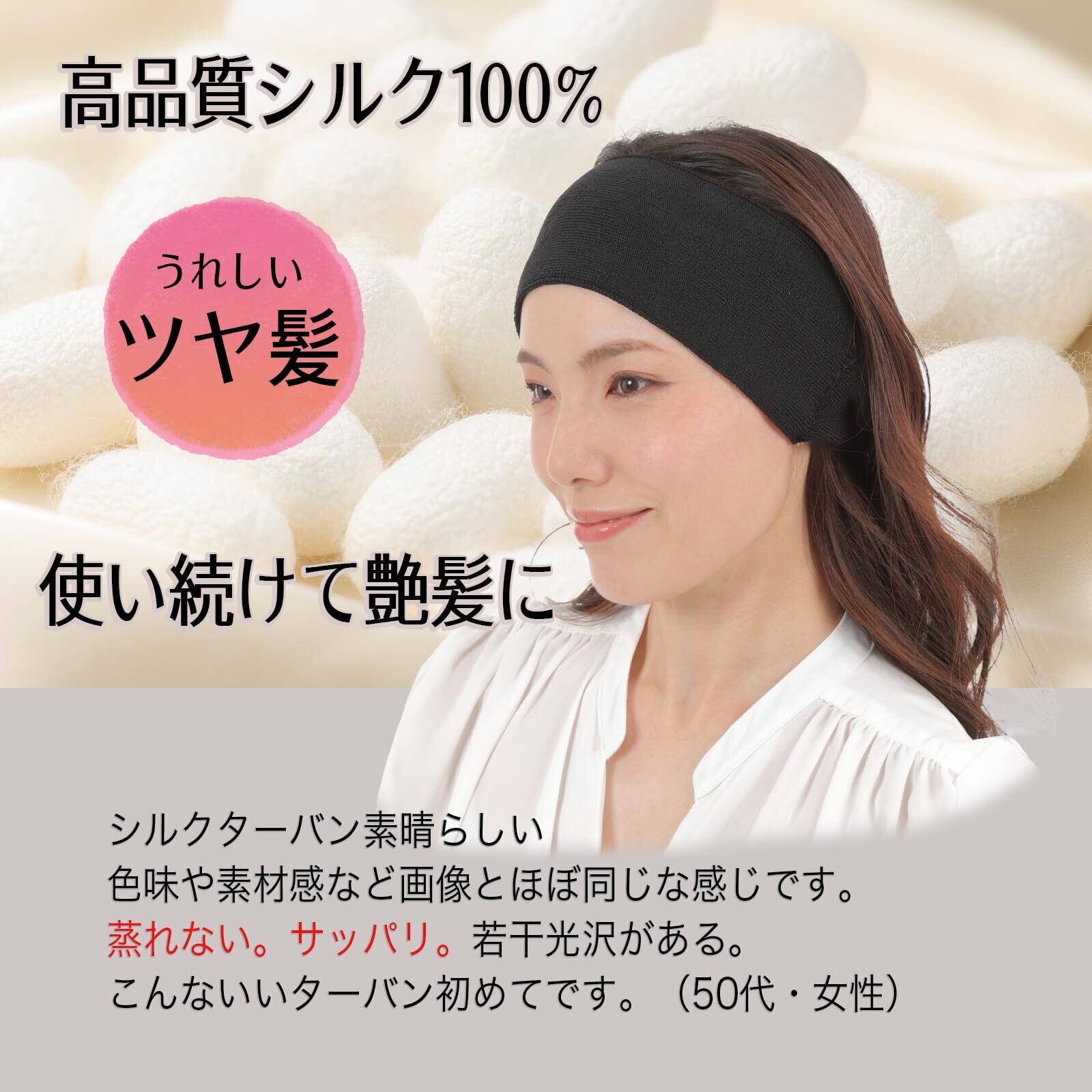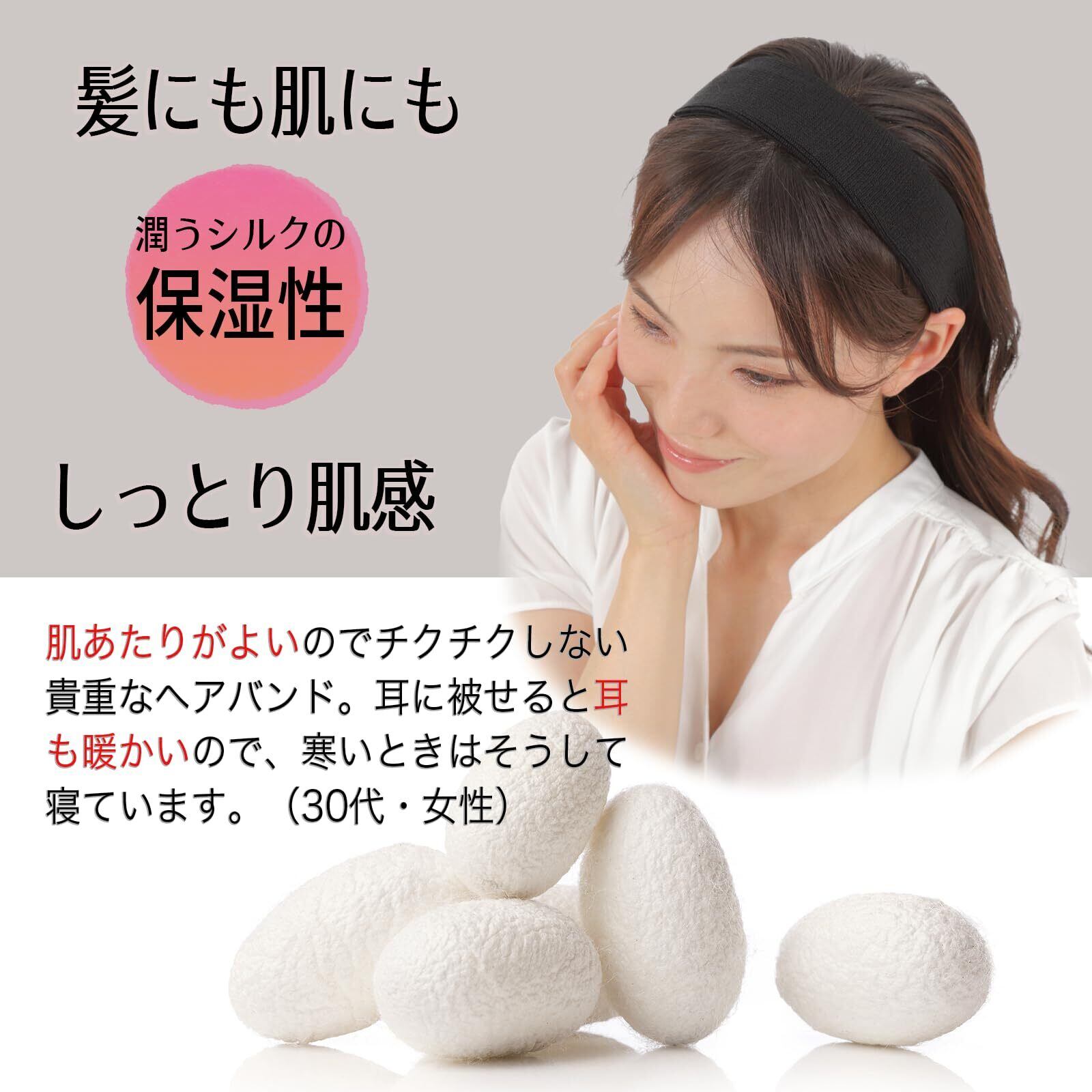 ヘアバンド シルク100% 締め付けない イヤーマフ 睡眠用 防寒 ターバン ヘッドバンド 汗止め 日本製 白髪隠し 絹 耳当て 洗顔 汗取り スポーツ 敏感肌 日本製 艶髪 保湿 黒 (1クロ)