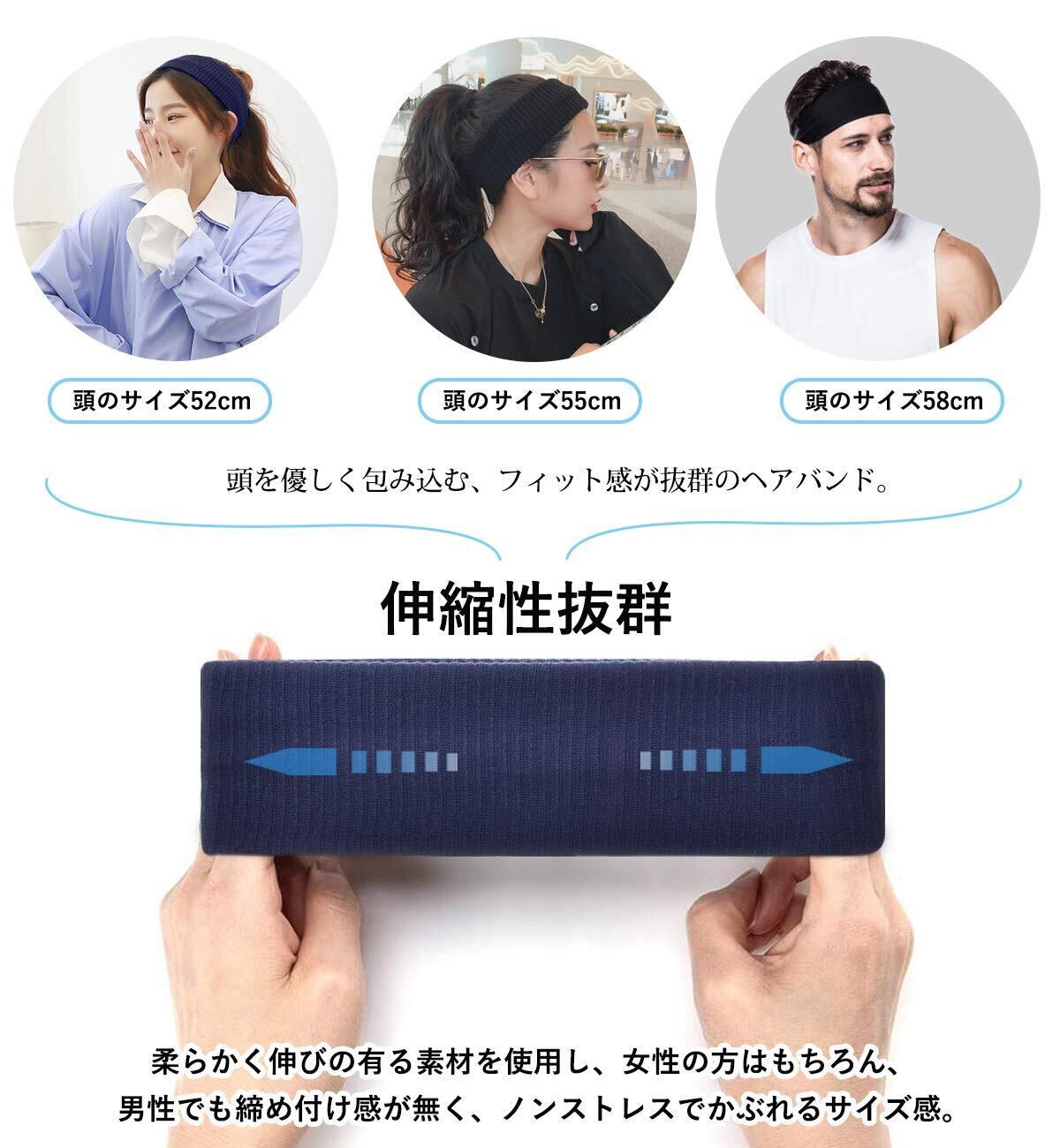ヘッドバンド 汗止め ヘアバンド 3本セット【UPF50+認証済み・吸汗速乾・肌に優しい】 ヘアターバン スポーツ用 洗顔用 通気性 伸縮性 無地 薄型 軽量 髪留めらかい ランニング ダンス ヨガ ジョギング 男女兼用