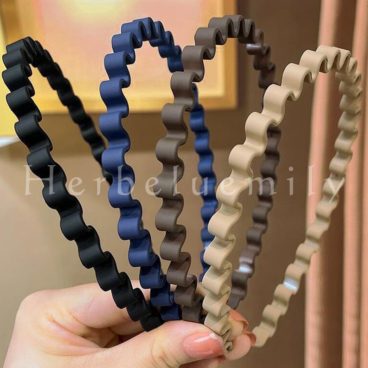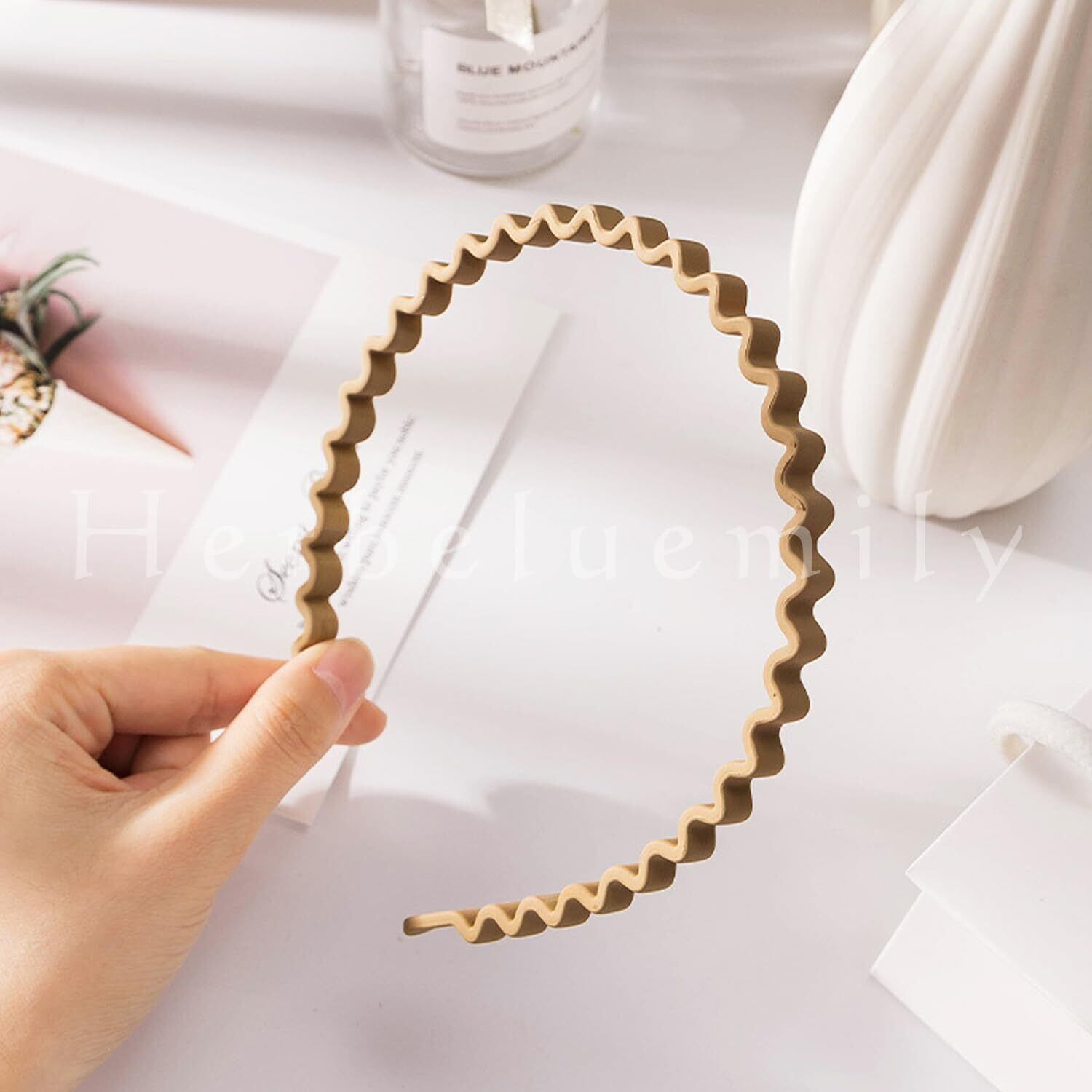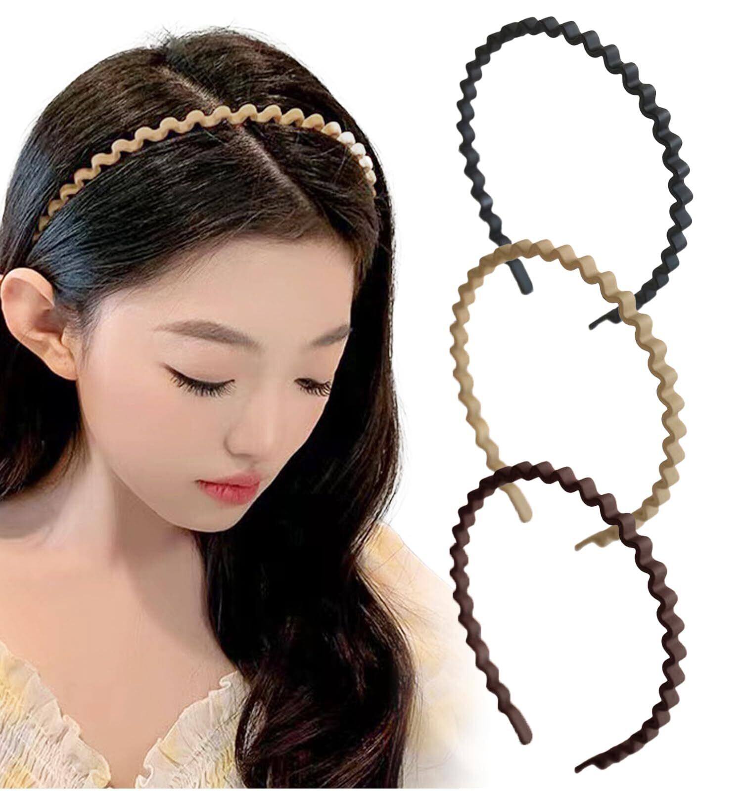 [Herbeluemily] カチューシャ ヘアバンド うねうね なみなみ 波型 マット シンプル ウェーブ 髪飾り 3本セット A ブラック・ベージュ・ブラウン HM-0070-R02-Aset