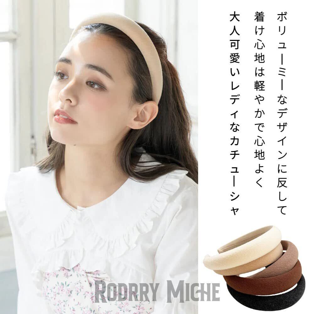 [Rodrry Meche] 73 ボリューム シンプル カチューシャ ヘアアクセサリー クラシカル 上品 大人っぽい オシャレ 可愛い 落ち着いた 厚め ヘアバンド ヘアピン 髪飾り 太め 幅広 痛くない レトロ くすみカラー ワイド 無地 ヘアーバンド 女の子 レディース (ブラック)