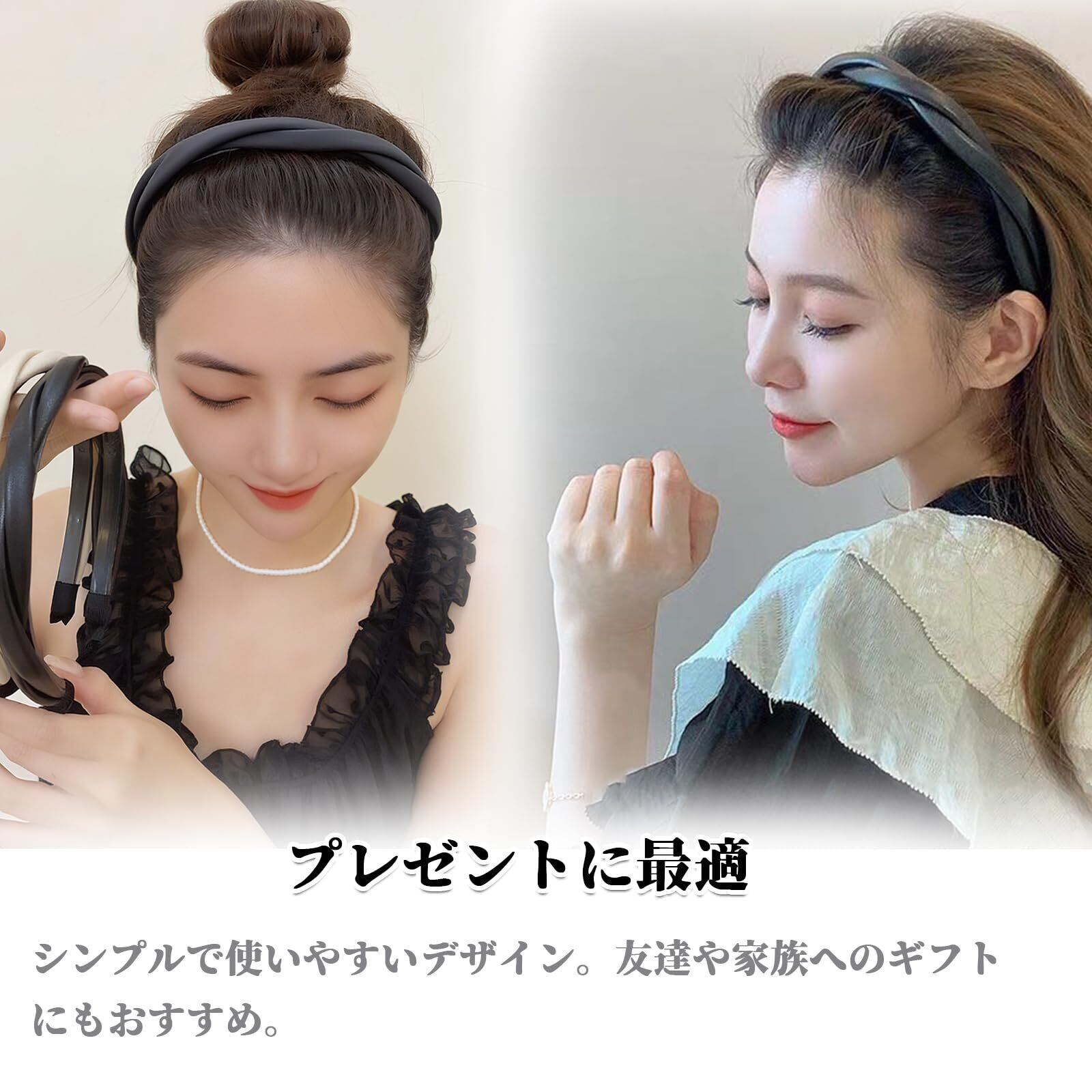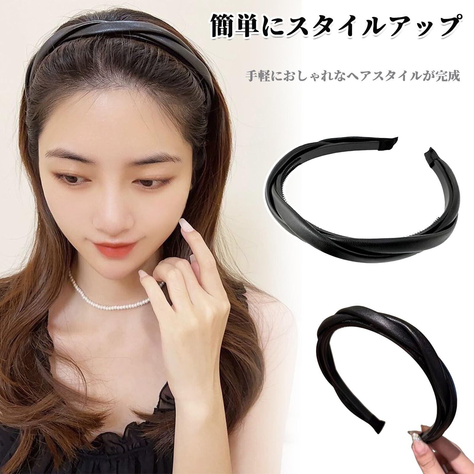 フェイクレザー カチューシャ ヘアバンド クロスねじり ツイスト 編み込み風 ロープ風 ブラック レディース おしゃれ ヘアアクセサリー 髪飾り 上品 シンプル 痛くない
