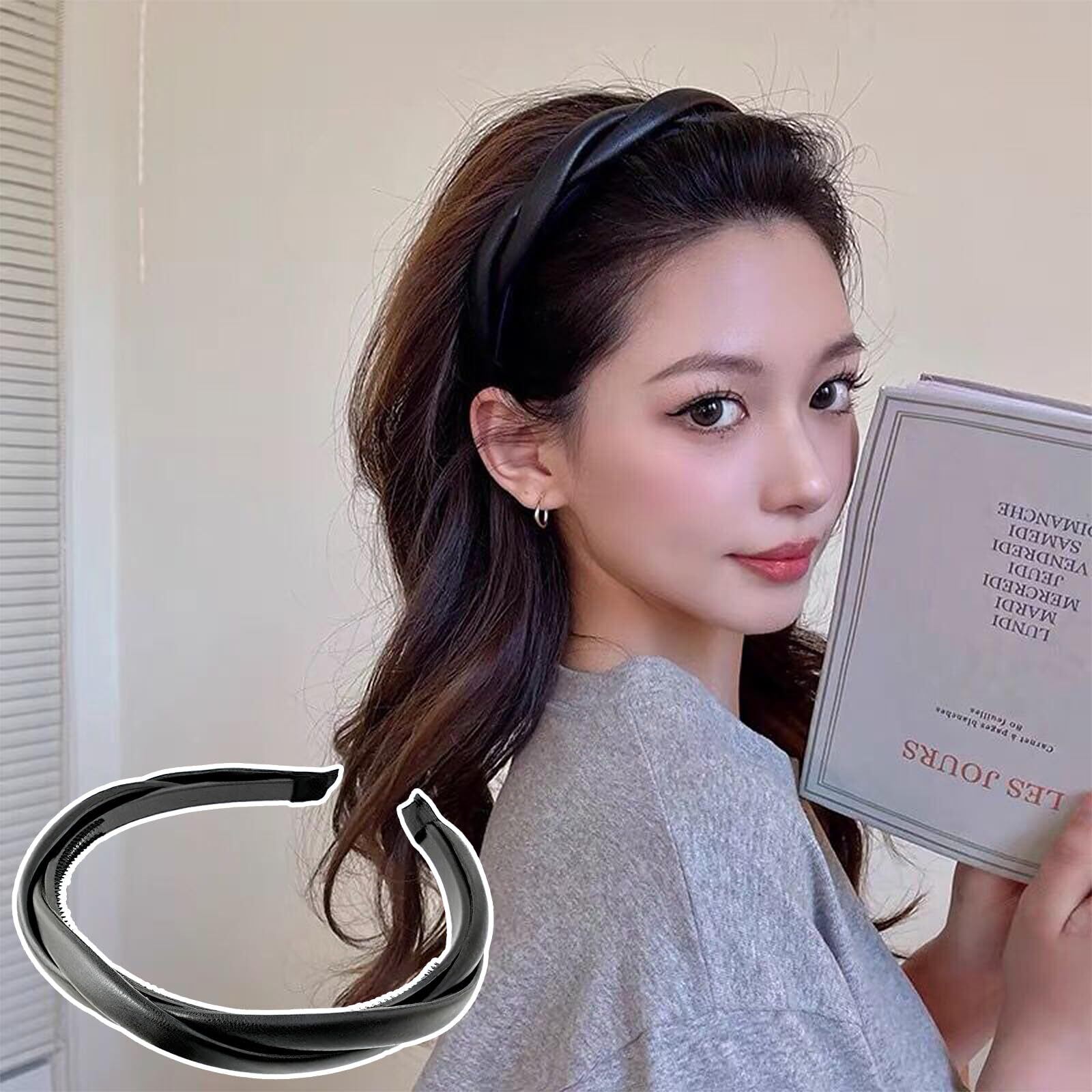 【シンプルでおしゃれ】ツイストデザインのレザー風カチューシャ。シーズン問わず使えるシンプルさで、どんなシーンでも活躍。