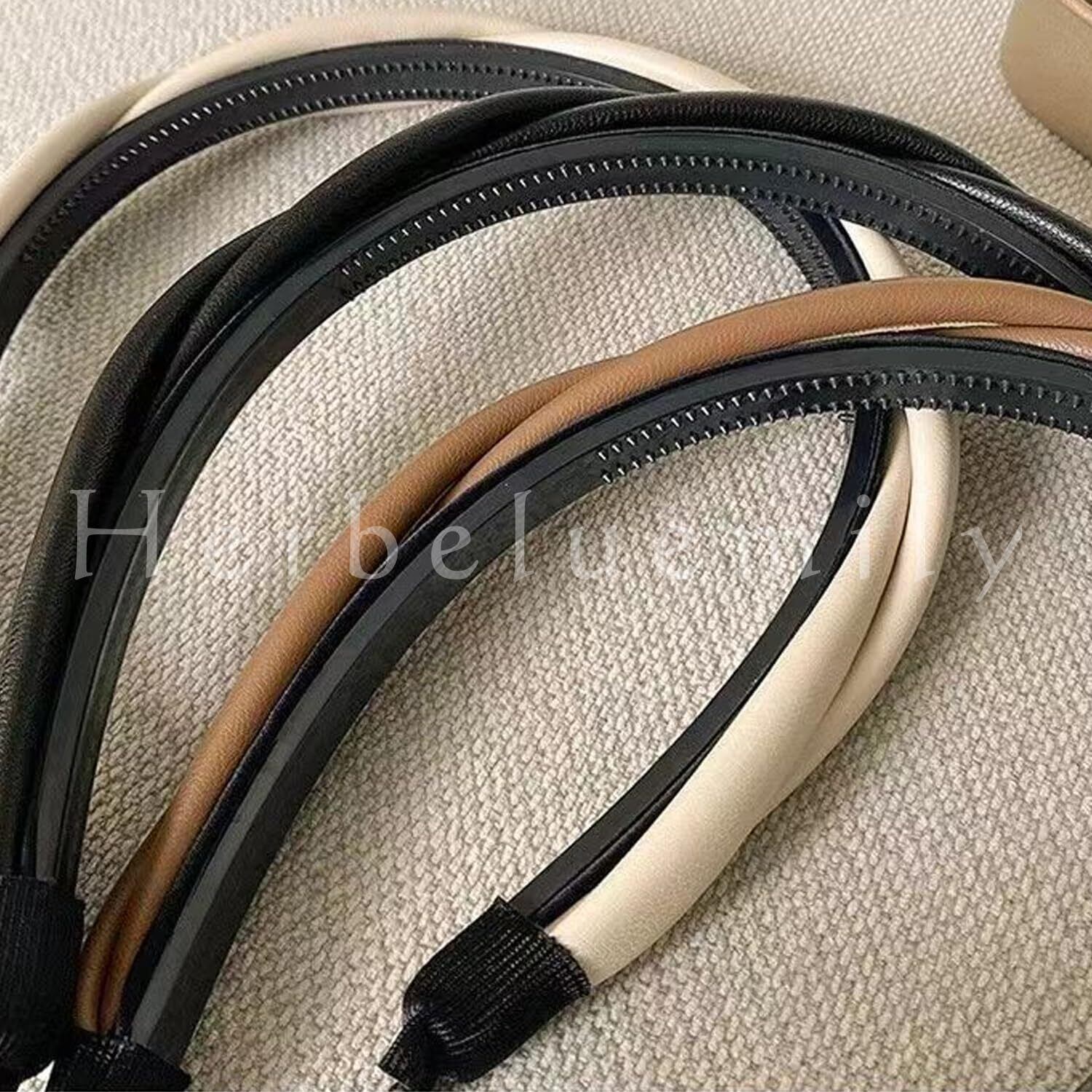 幅広めなサイズでこなれたトレンド感を演出するレザー風カチューシャ。一つ加えるだけで垢抜けた印象に学生さんの学校でのヘアスタイルや、OLさんのオフィスカジュアルスタイル、通勤・通学のお供にもおすすめ。洗顔やスキンケア用のヘアバンドとしても◎