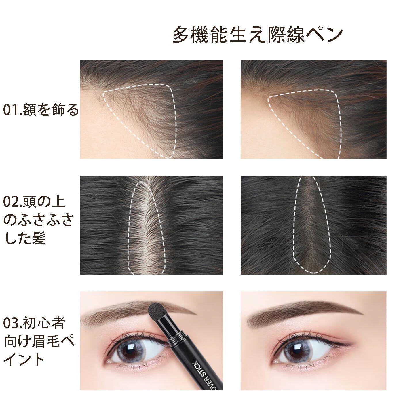 【気質と修飾を高める】:軽くて携帯的で、使用時の手触りが快適で、迅速にあなたの気質を高めることができて、顔の輪郭を修飾して、おでこをよりふっくらと見せることができて、特に髪の生え際線を調整する必要がある人に適して、例えば前頭角や長すぎる髪の生え際線を改善します。
