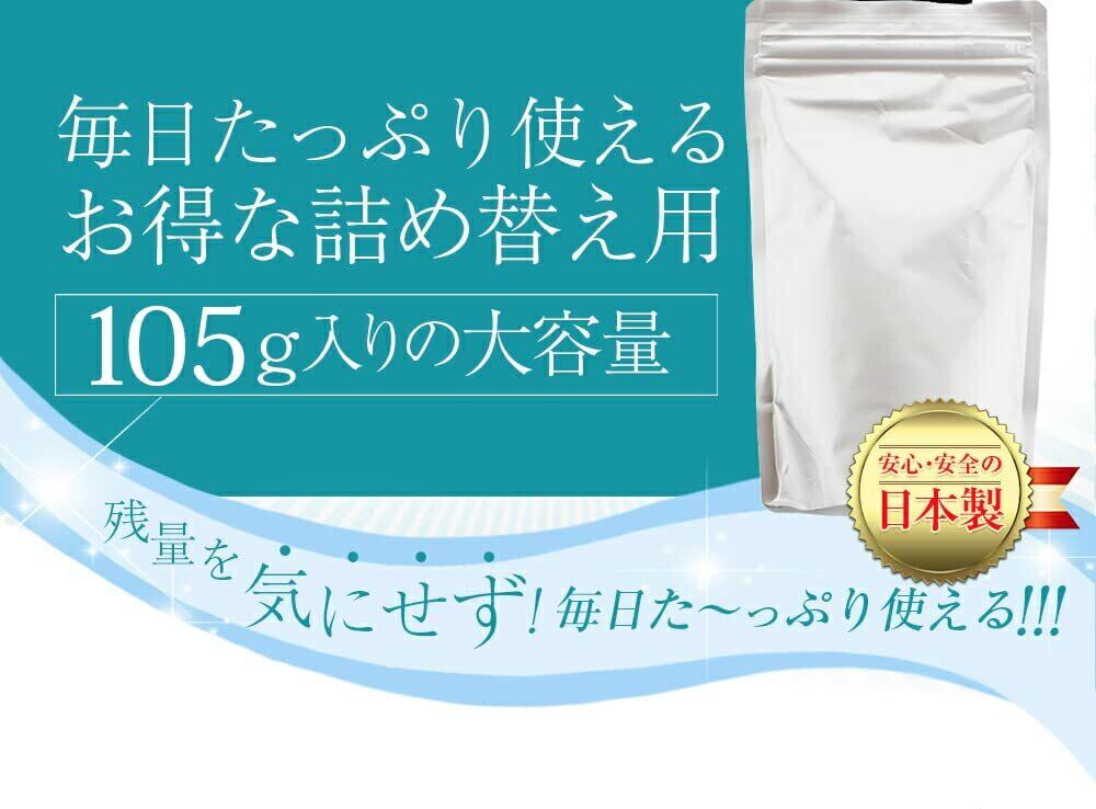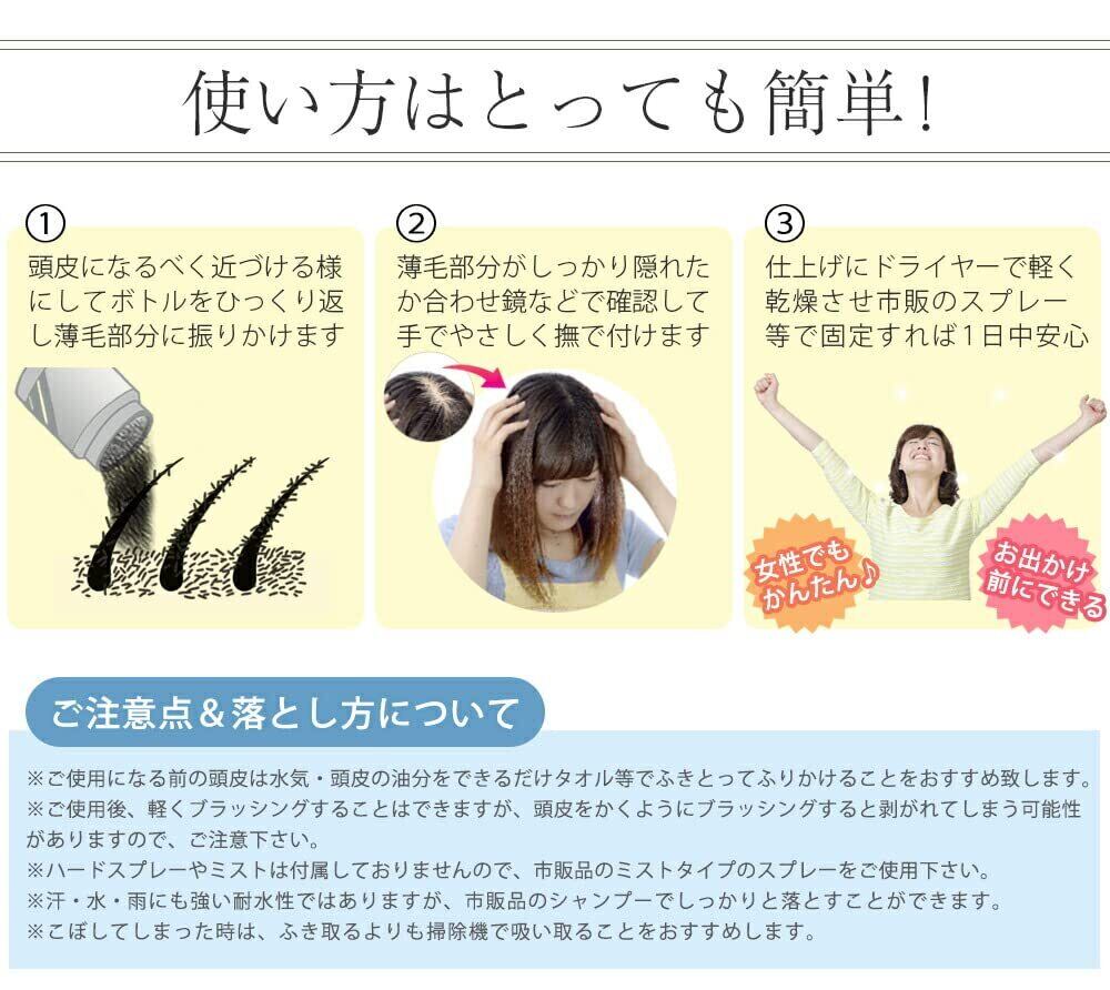 残量を気にせず使える!通常パックでたっぷり最低105gは入っています(薄いつむじ隠しで約300回分)。また、新たに500g入りの大容量パックも登場。国内工場にて100パーセント植物性原料。体に悪い成分は使用しておりません。パウダーはとても細かい繊維ですので故意に吸い込まないようにしてください。