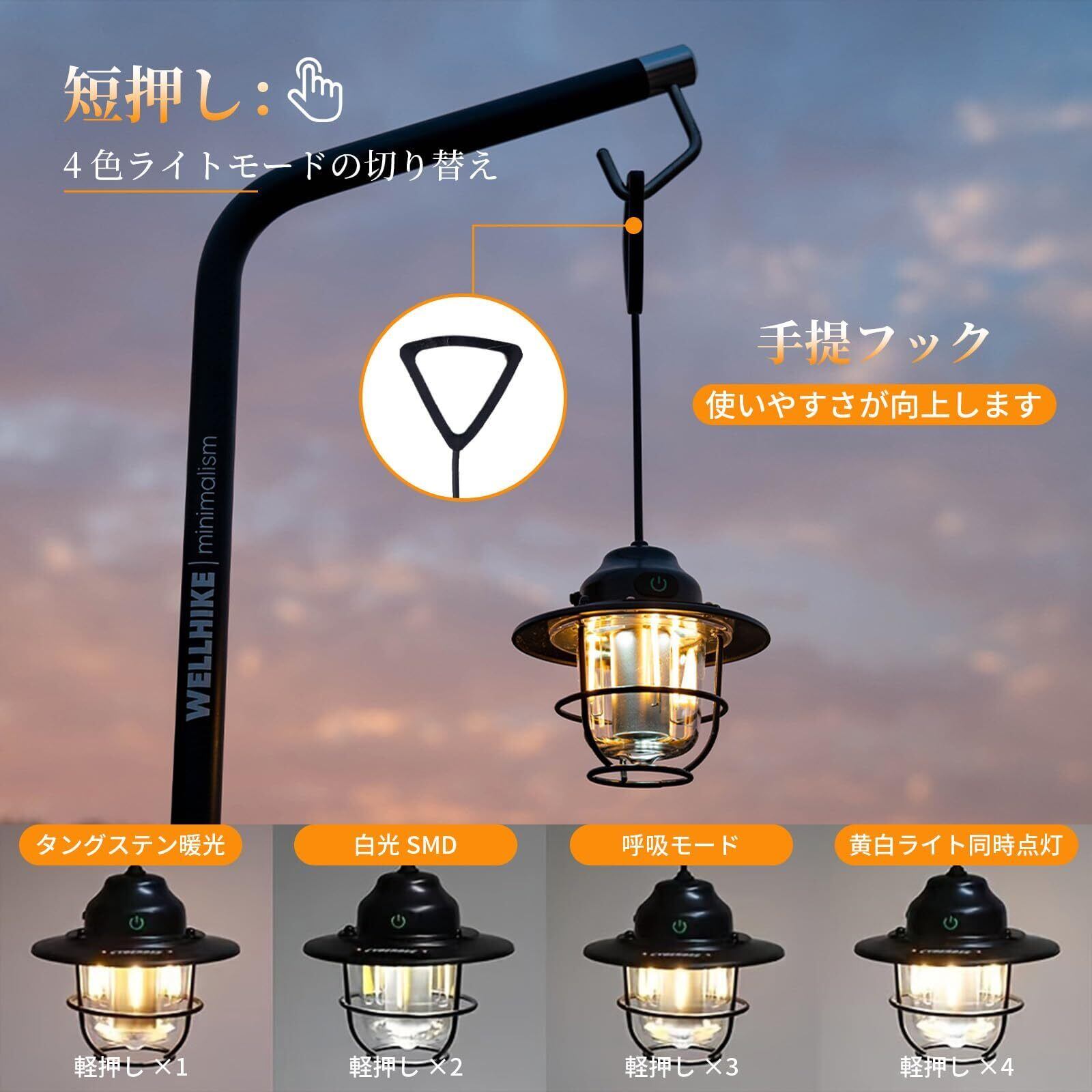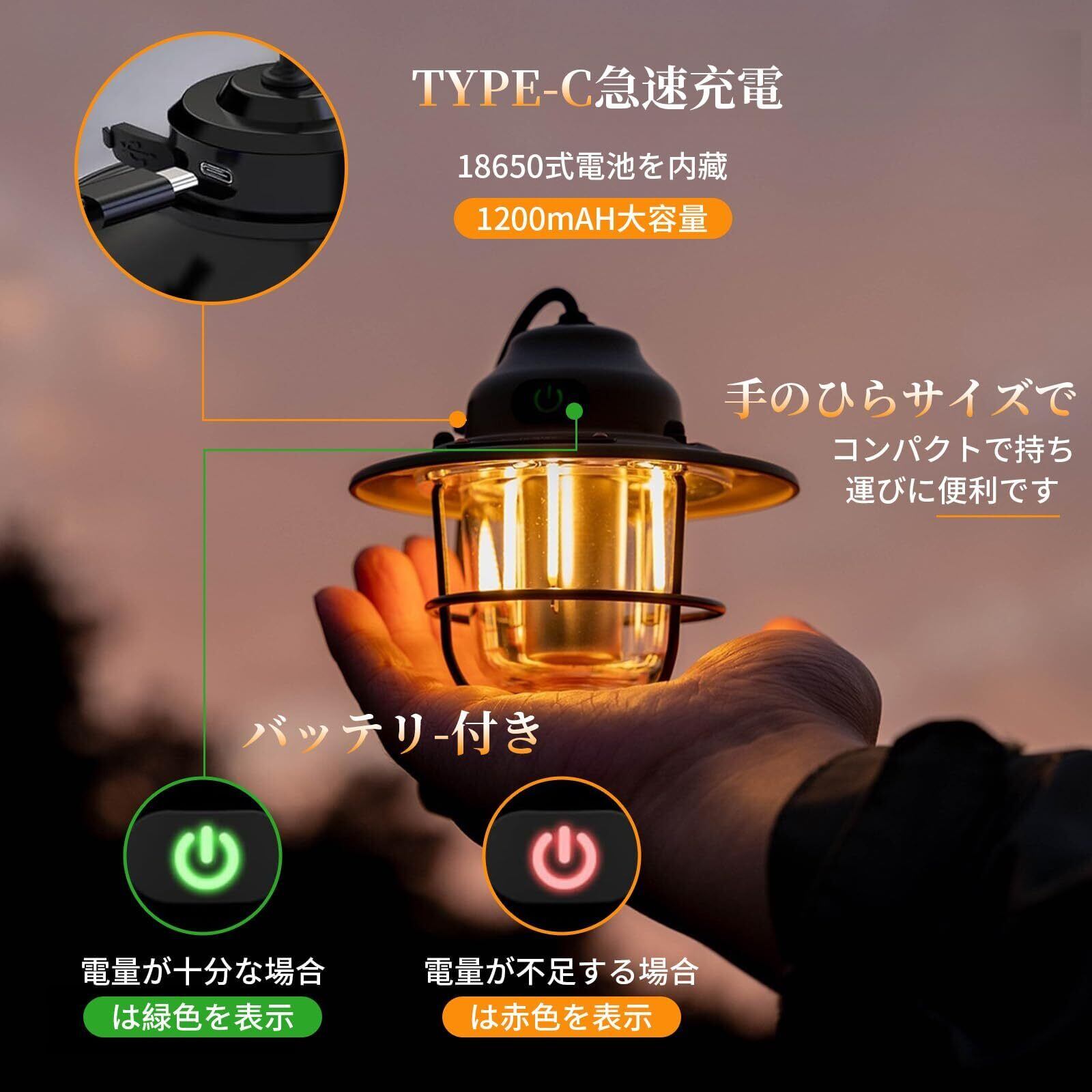 キャンプランタン 充電式 2個入り LEDランタン 高輝度 IPX4防水 無段階調光 4色モード 超軽量140g USB-C充電 防災セット アウトドア 登山 テント 非常用ライト グリーン