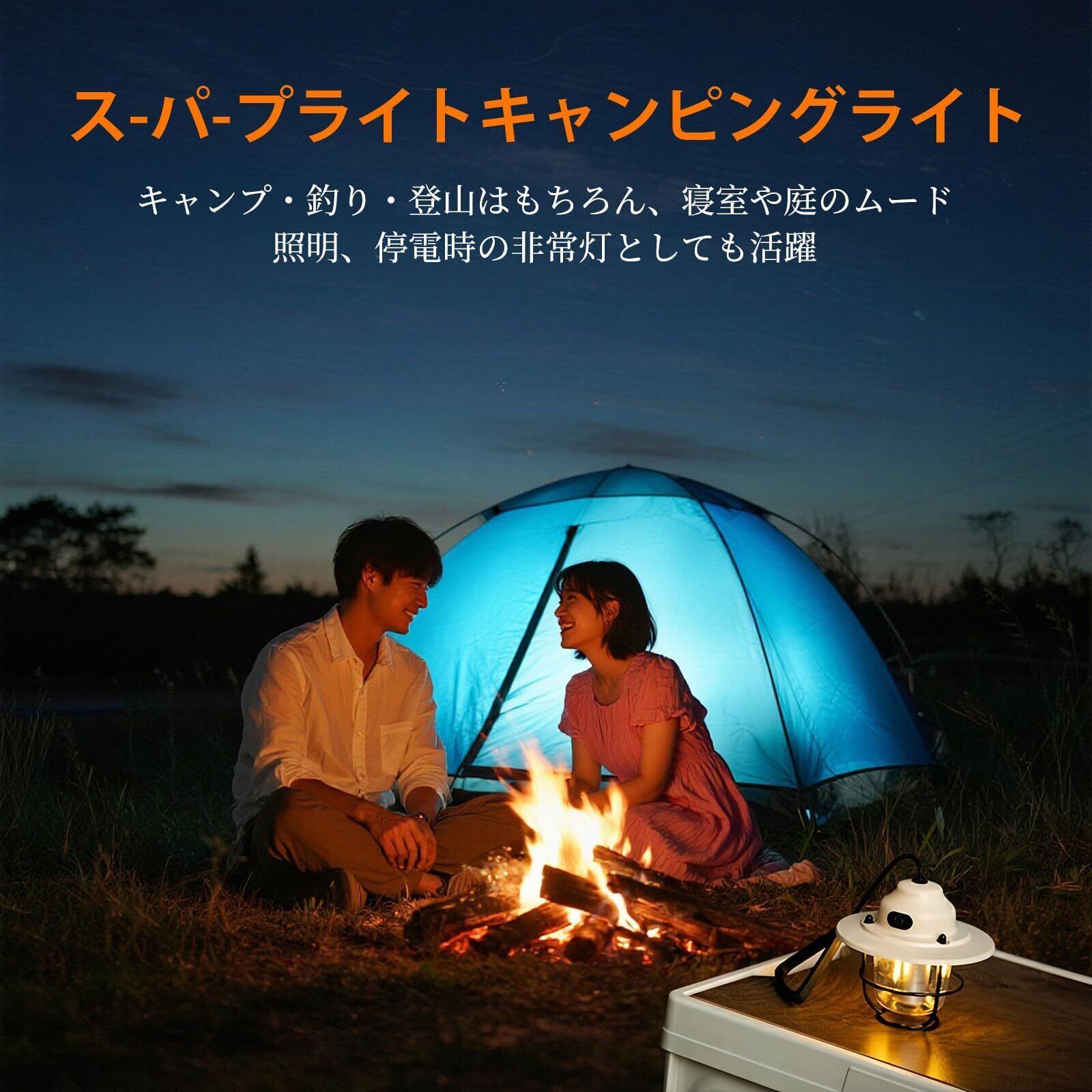 【4色ライトモード&無段階調光】 暖色光・白色光・暖黄色光・暖白色光の4モードを搭載。ワンクリックで簡単切り替え可能。無段階調光機能で明るさを自由に調整でき、キャンプや防災時のシーンに合わせた最適な照明を提供します。