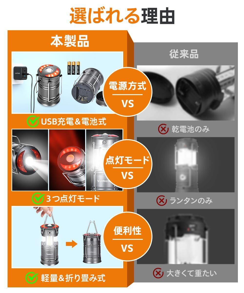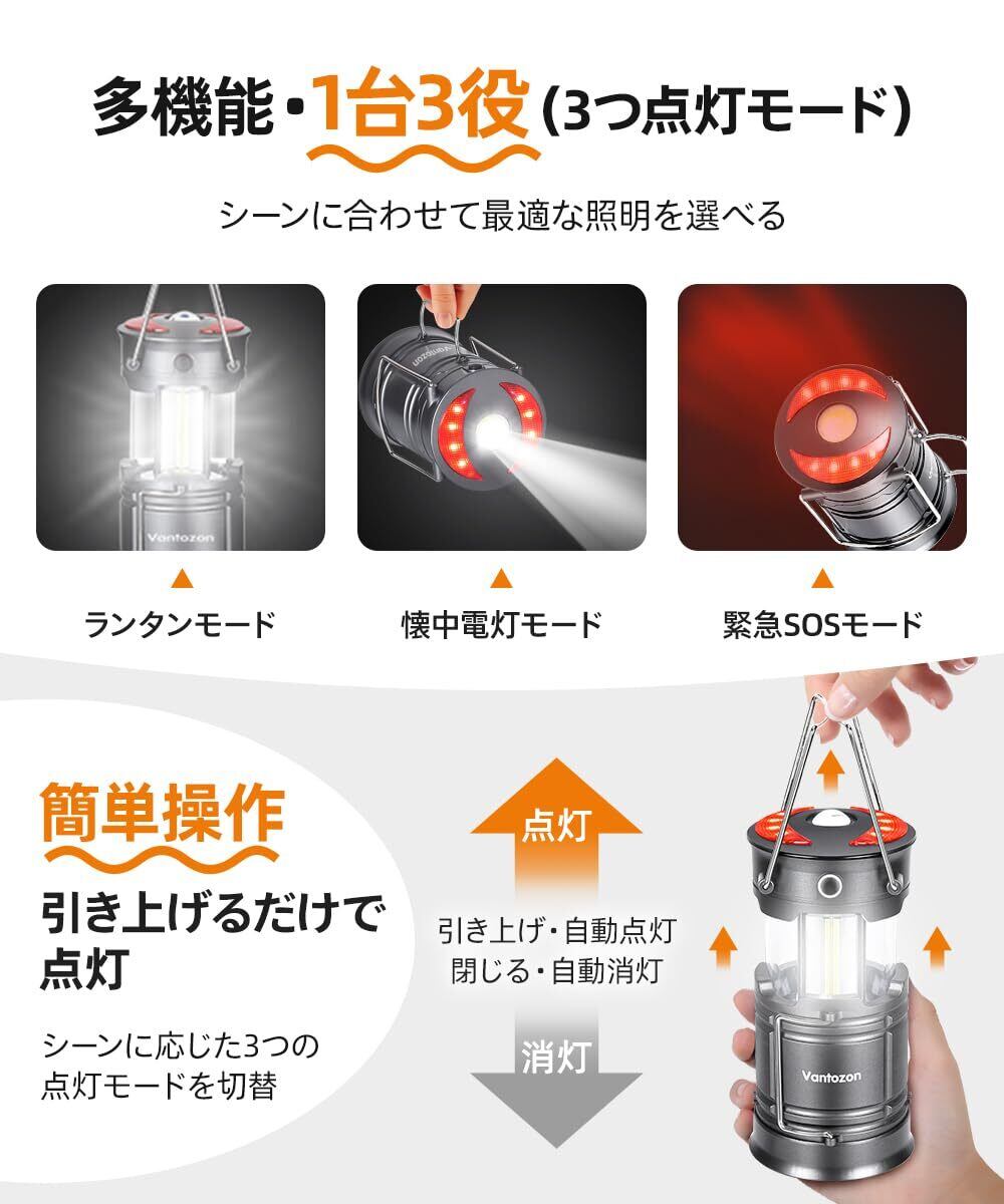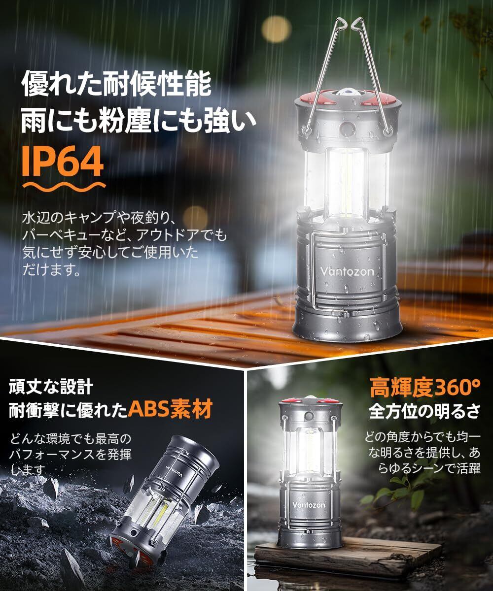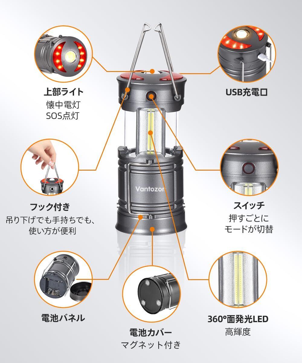 【2024革新モデル・1台多役】 ランタン led 高輝度 ledランタン 充電式 電池式 防災 キャンプ 軽量 防滴仕様 夜釣り 登山 防災 懐中電灯機能 防災グッズ 停電 緊急 非常用 電池式ラン SSOS点灯モード 折り畳式 持ち運び便利 (グレー)