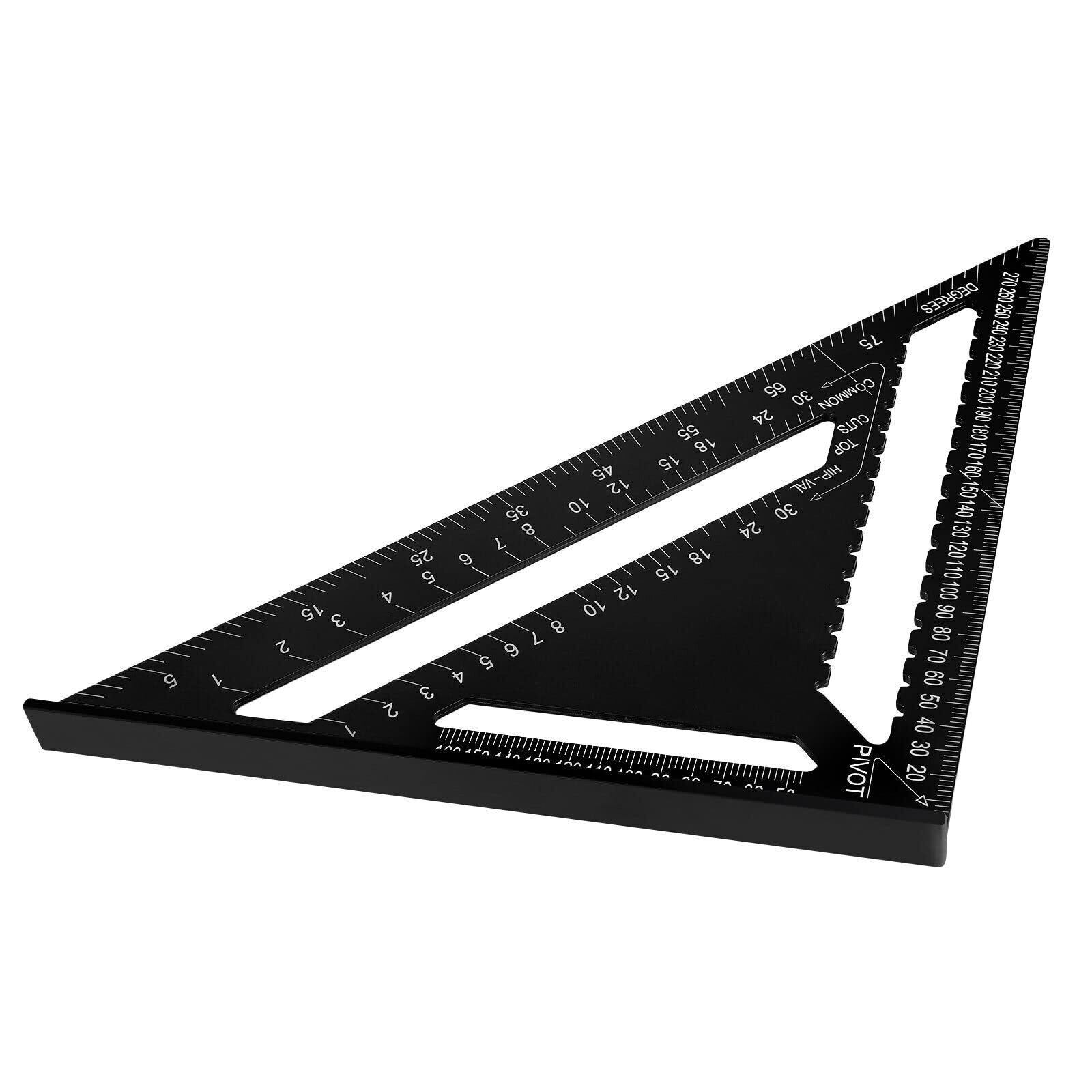 Beslands三角定規 木工用 丸鋸定規 30*30cm 両面目盛り 12インチ アルミ合金 ブラック 分度器 45度ケガキ工具 大工道具 測量用品 0-90度 (ブラック)