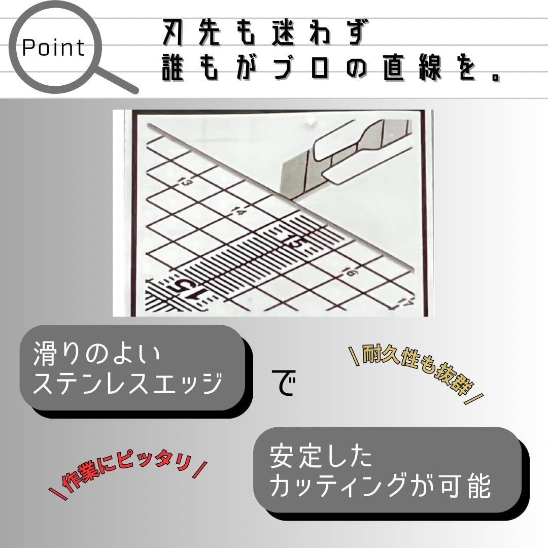 ステンレス加工付きの一辺:まっすぐなライン引きや作業ガイドに便利