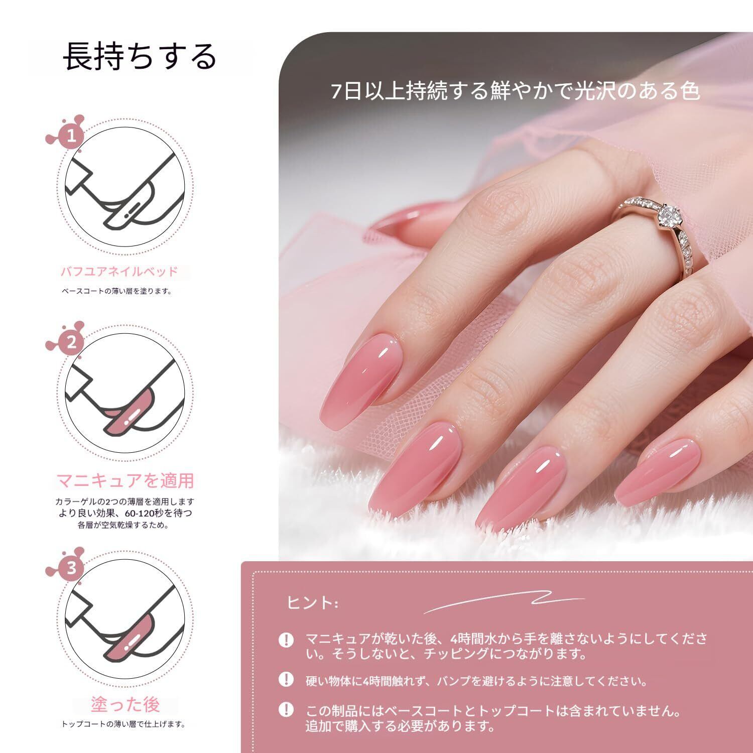 【速乾性&簡単】ネイルランプは不要。60秒で自然乾燥、3分で硬化します。当社のネイルポリッシュは高純度の顔料を抽出し、強い発色効果を発揮します。初心者でもご自宅でプロ並みのネイルアートが簡単に作れて、美しい爪を演出できます!