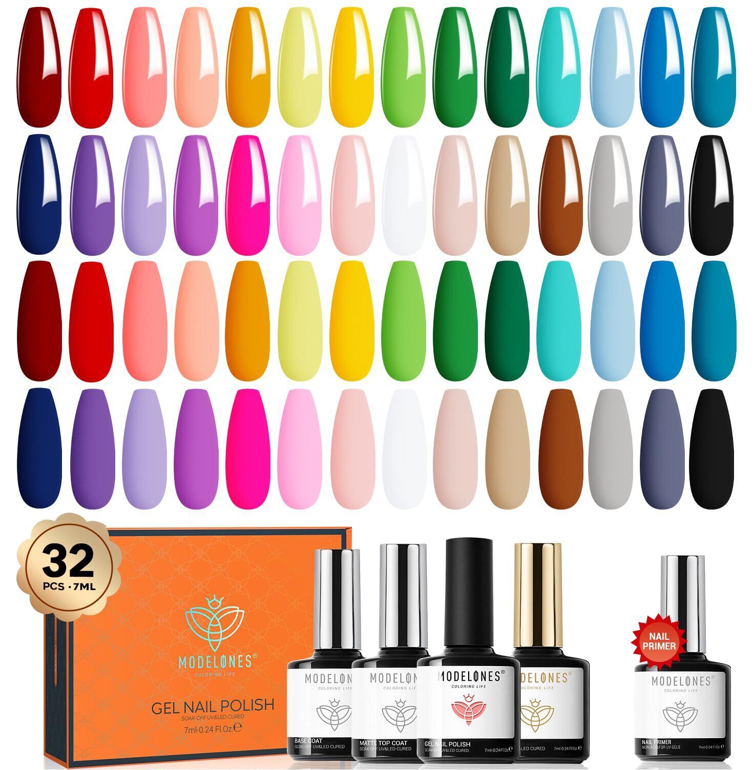 Modelones ジェルネイルポリッシュ カラージェル カラージェル セット 32枚のジェルマニキュアセット 28色+4 7ml ジェルネイルキット カラージェル ジェルネイル カラー
