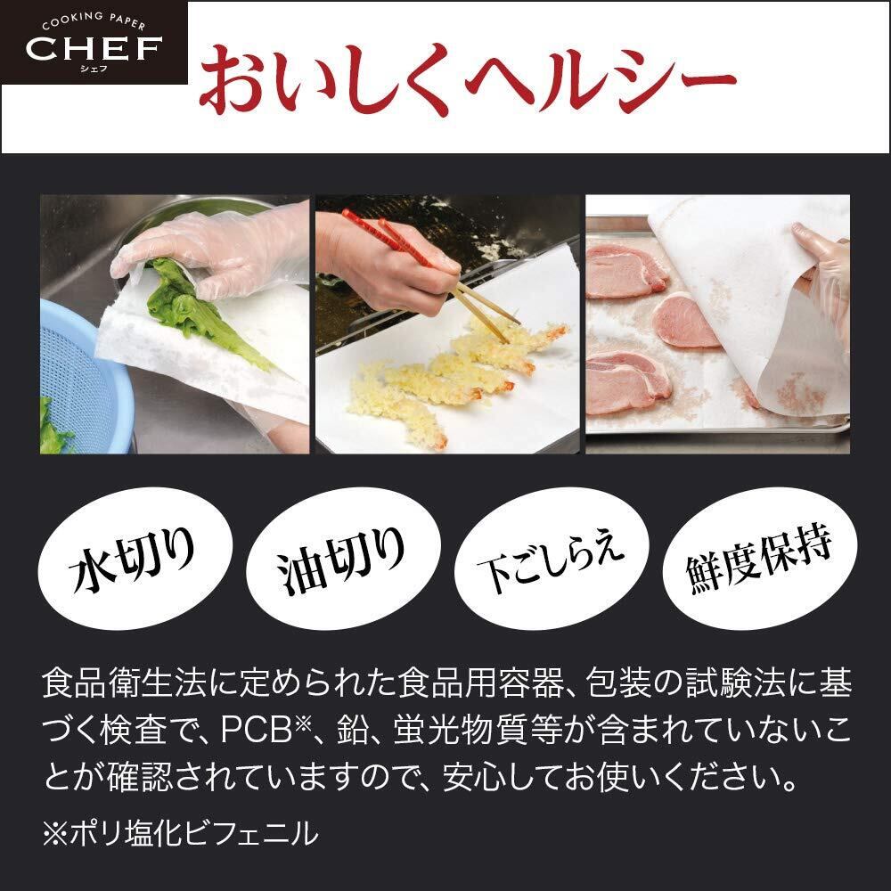 二層構造Hシートにより、水・油・ドリップをたっぷり吸収する不繊維タイプのクッキングペーパー。天然パルプ使用。