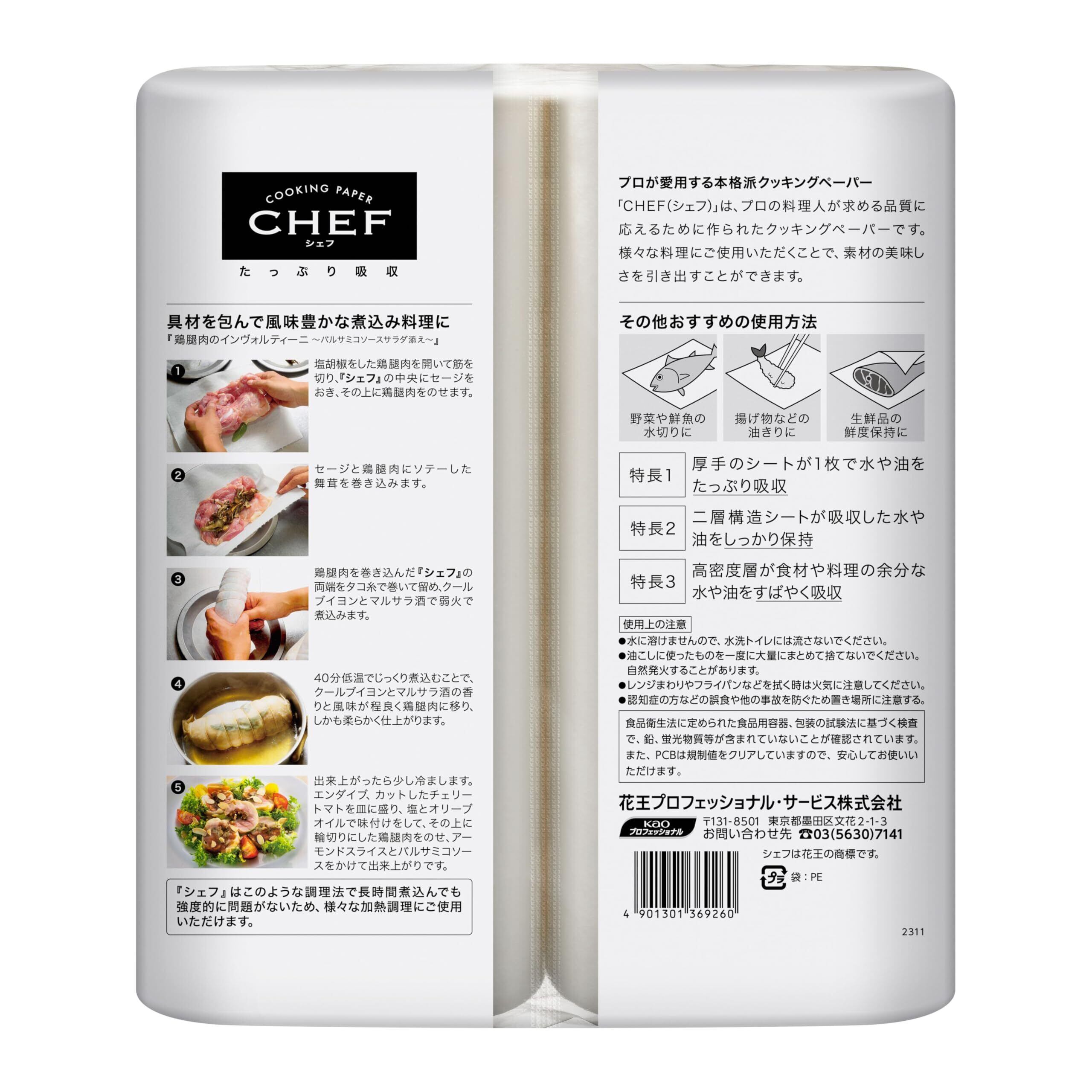 花王プロシリーズ【業務用 クッキングペーパー】シェフ キッチンペーパー たっぷり吸収M ホワイト 100枚×2ロール(花王プロフェッショナルシリーズ)