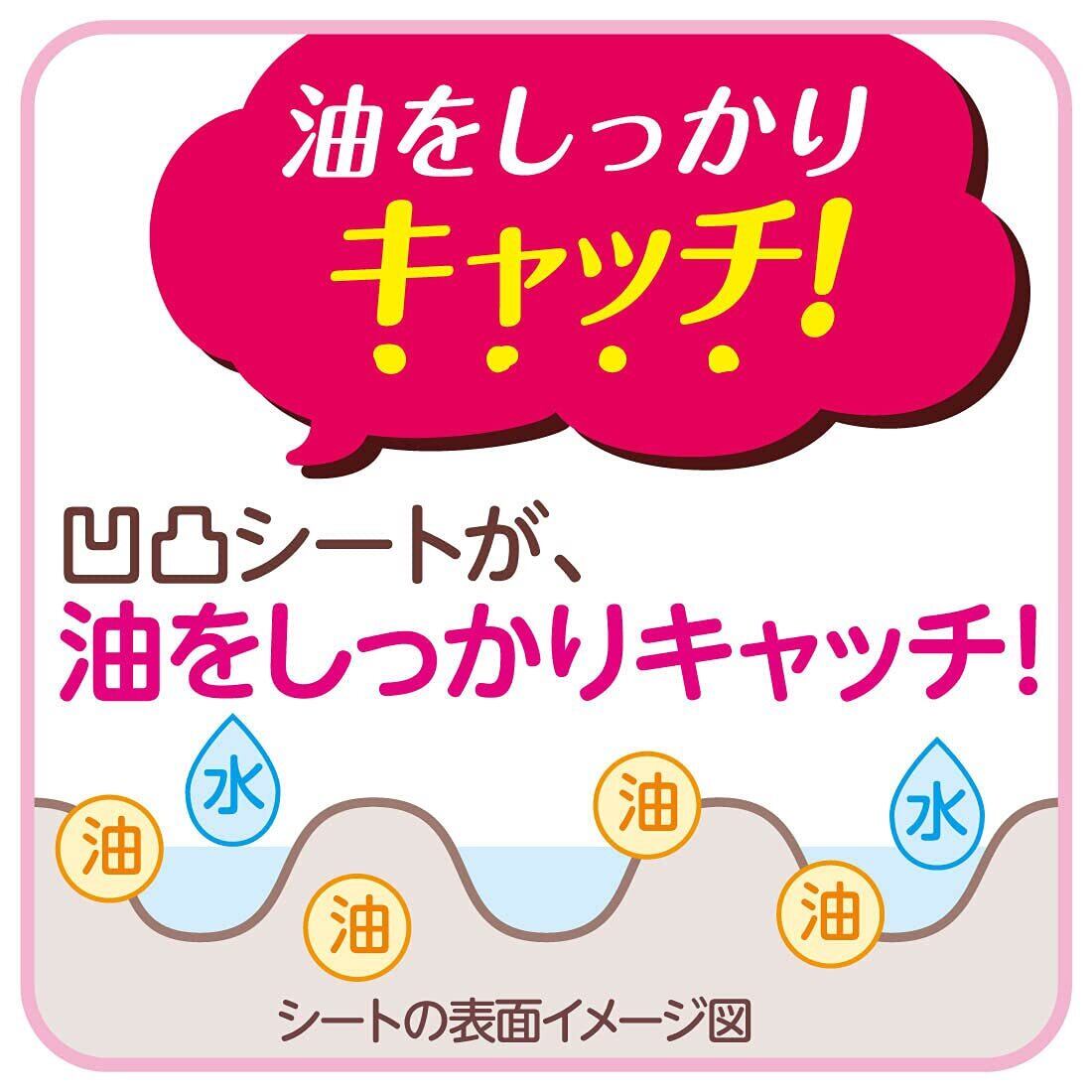 凹凸シートが、油をしっかりキャッチ。揚げ物の油きりからフライパン・コンロまわりの油汚れなどしっかり吸収します。