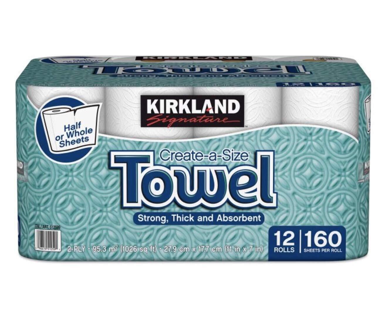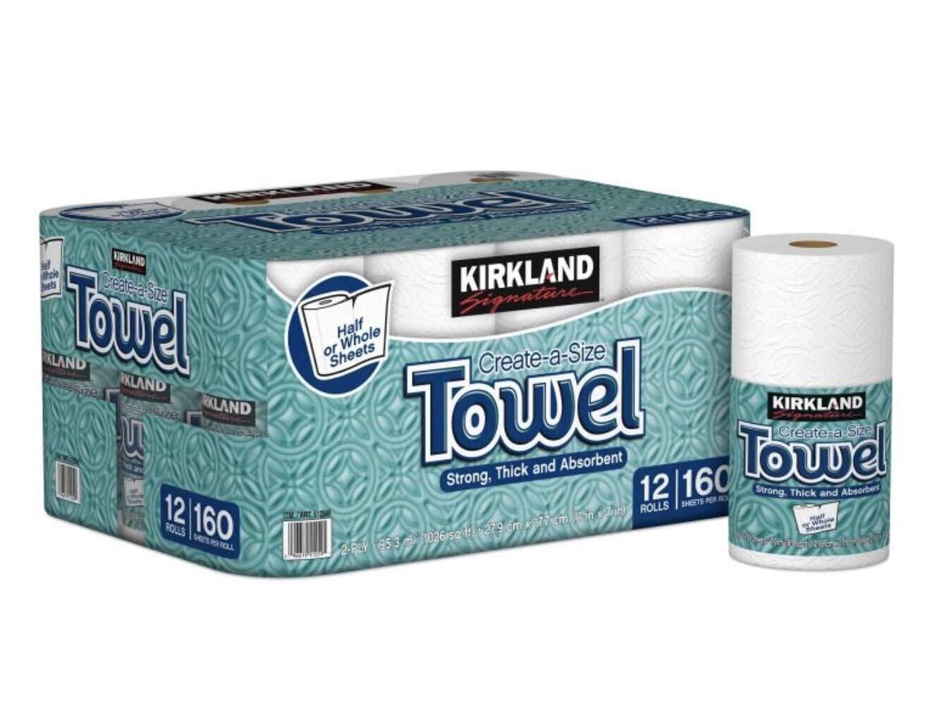 KIRKLAND カークランド シグネチャー ロールタオル(ペーパータオル) 2枚重ね 160カット12ロール