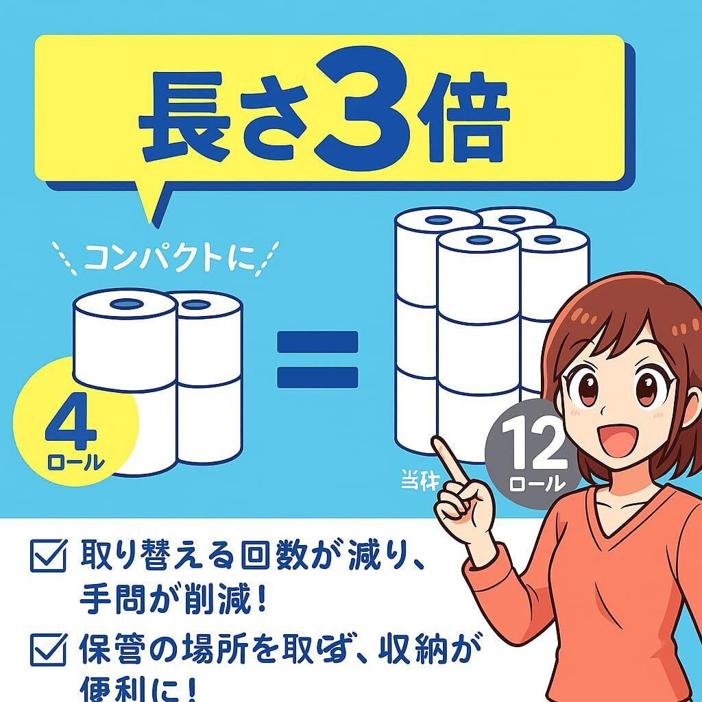 【省スペース設計】4ロールで12ロール分、収納場所を1/3に節約