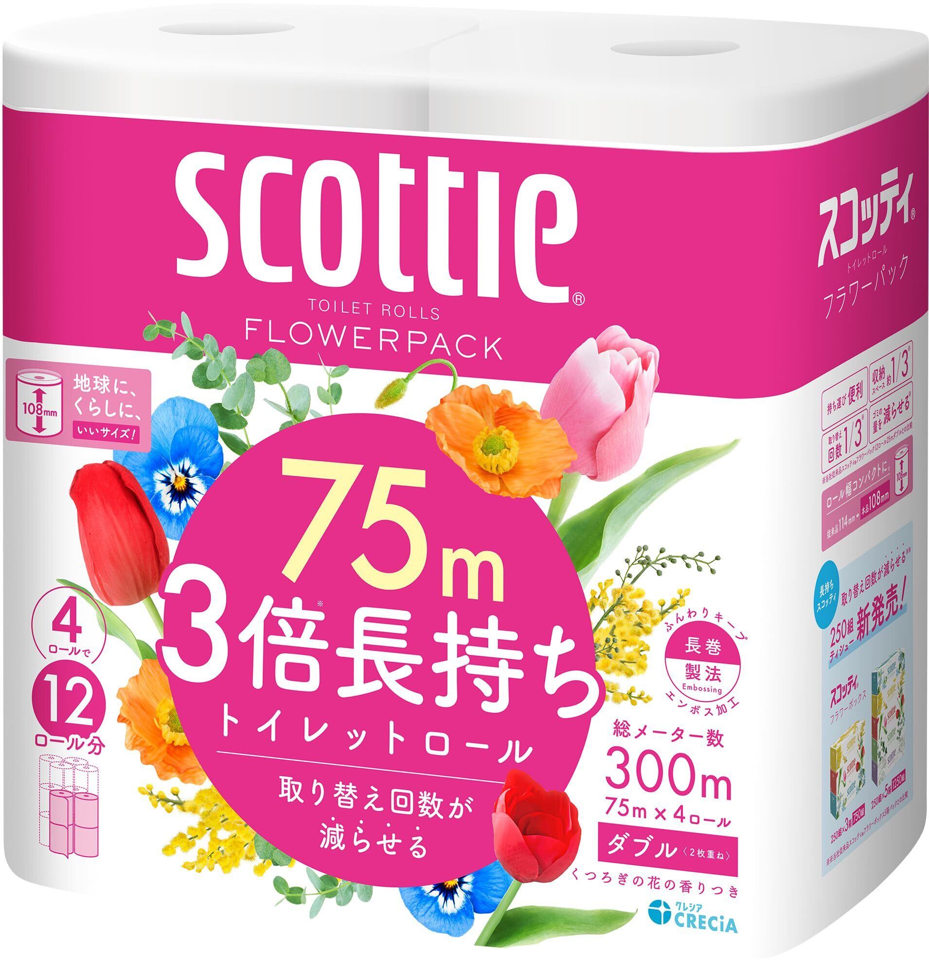 トイレット ダブル 3倍長持ち 75m 48ロール スコッティフラワーパック (ケース品)