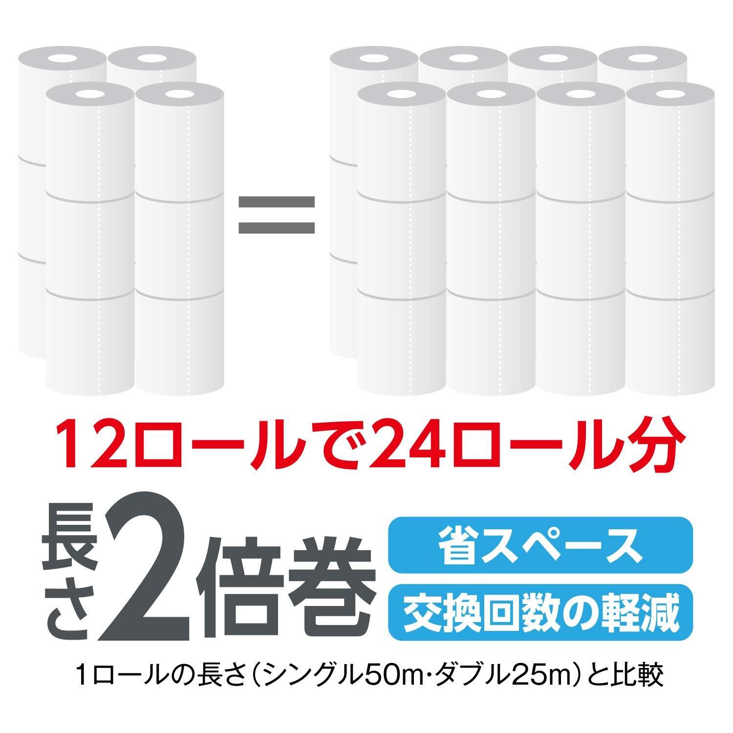 by トイレットペーパー 長さ2倍巻 50m x 12ロール ダブル 単品 (12ロールで24ロール分) フローラルの香り