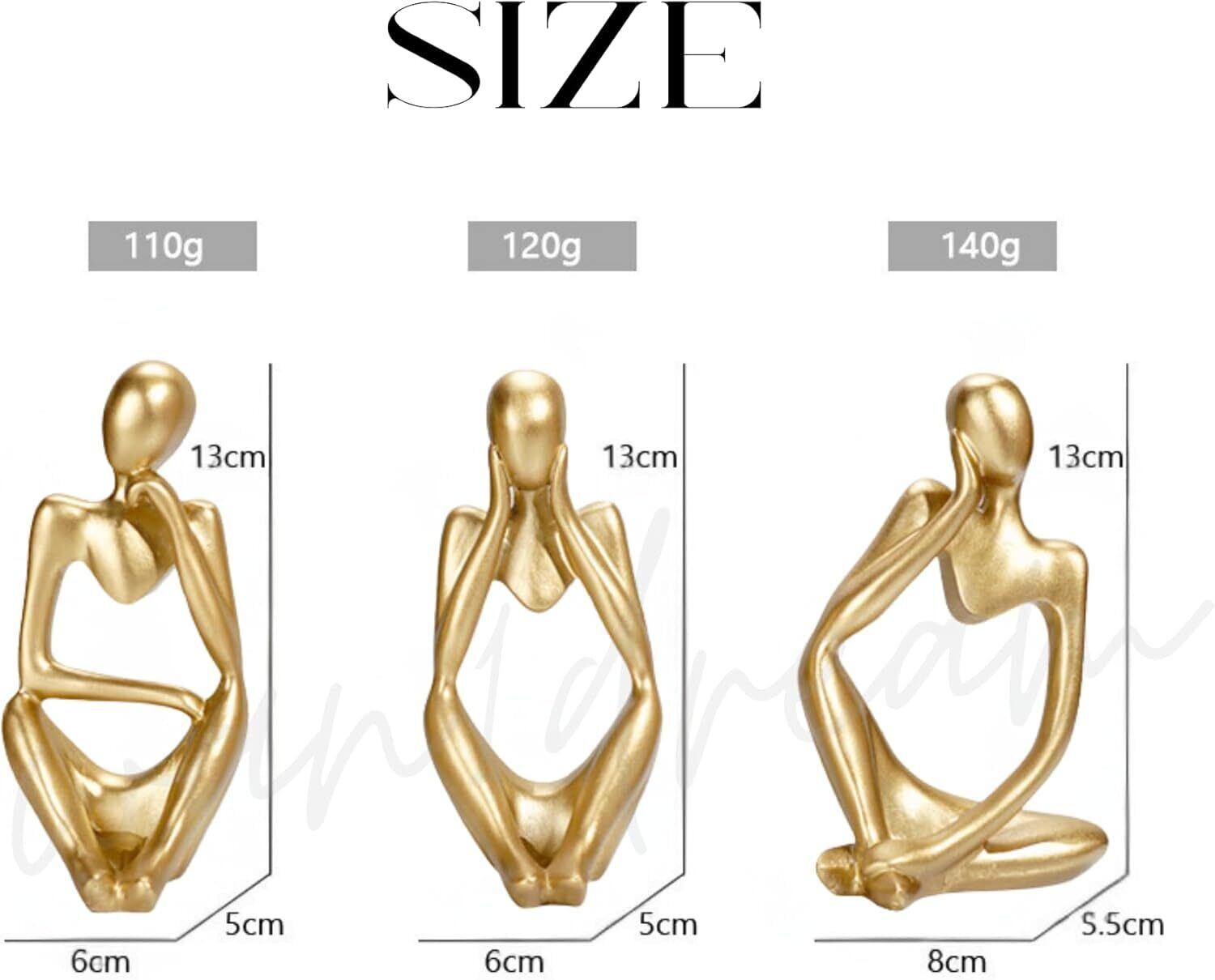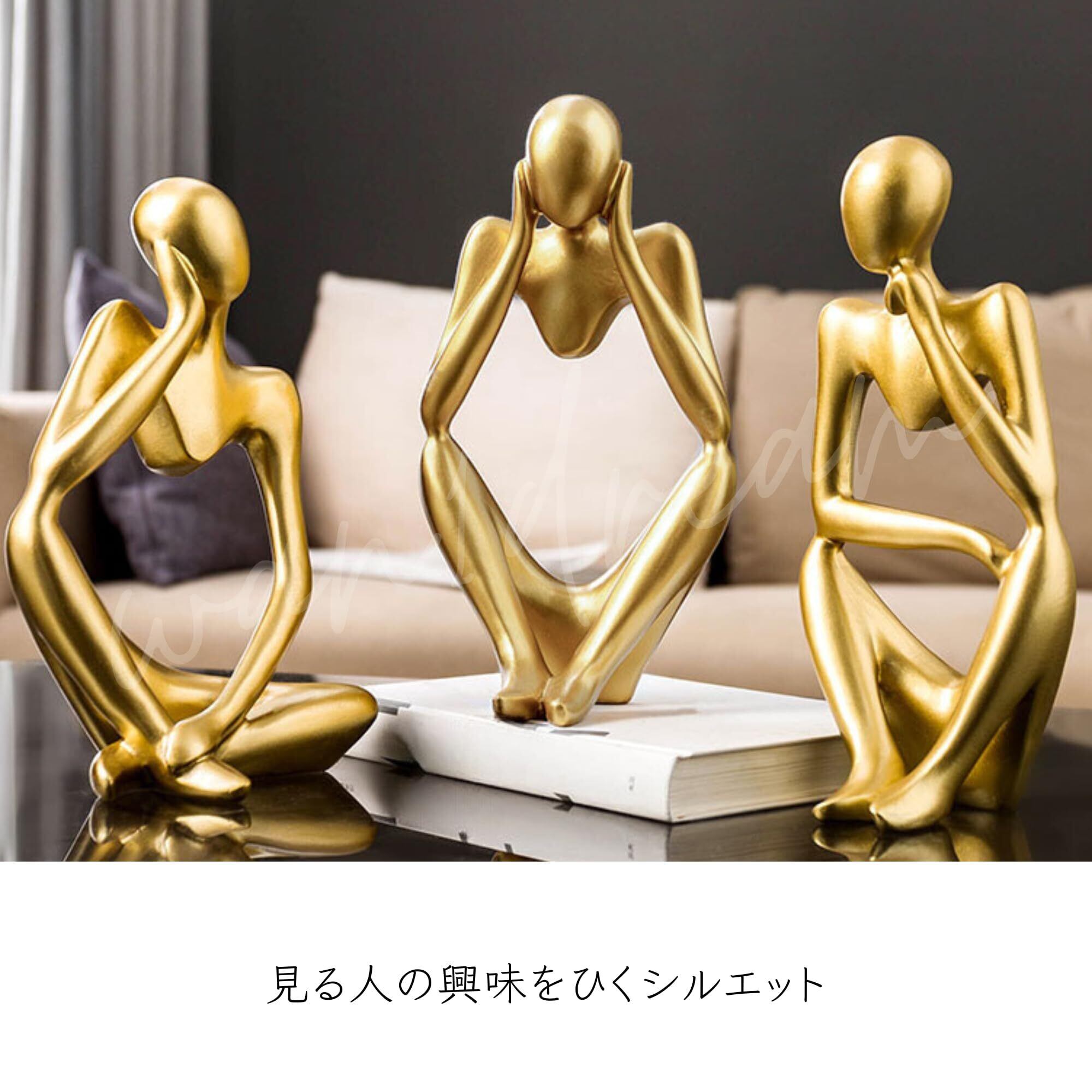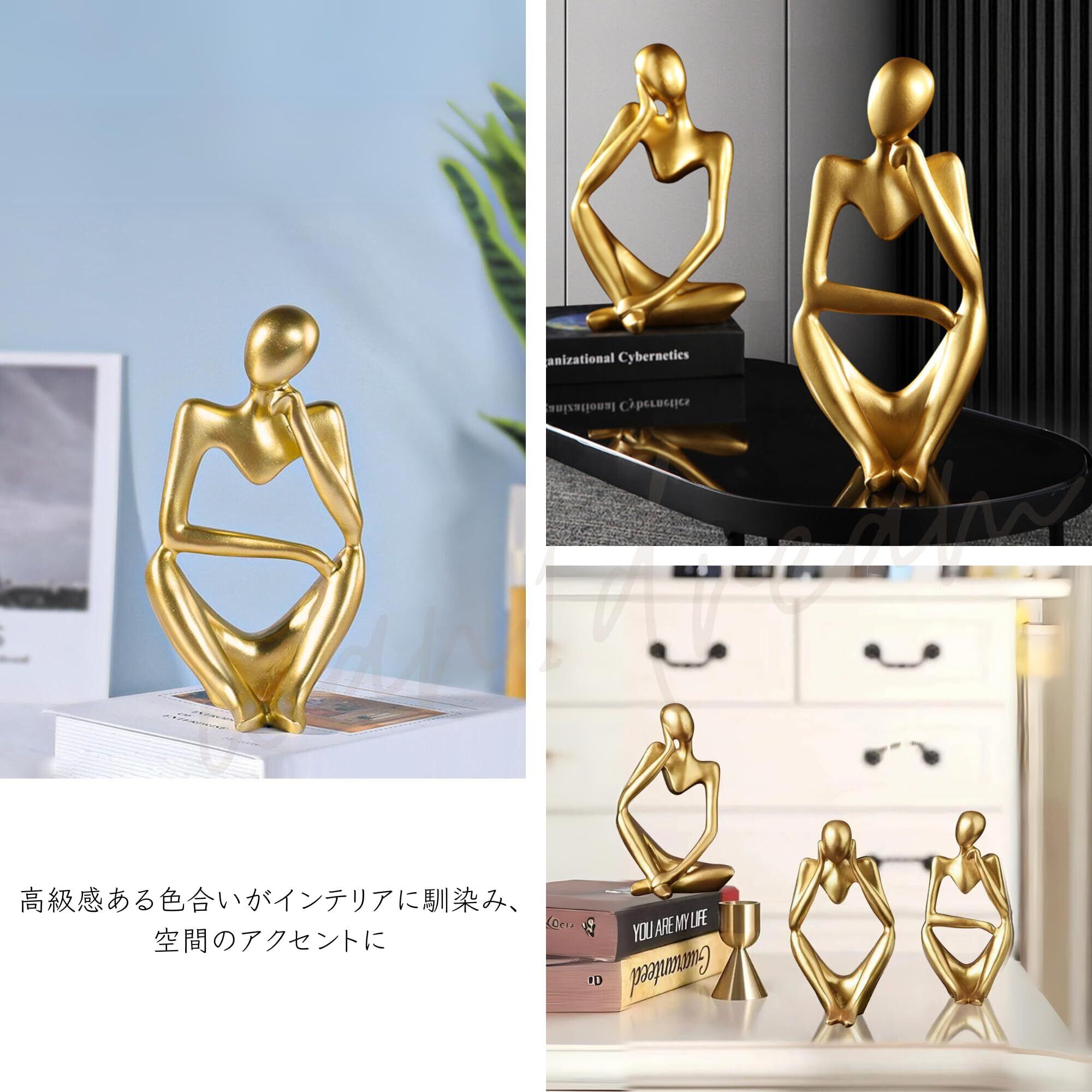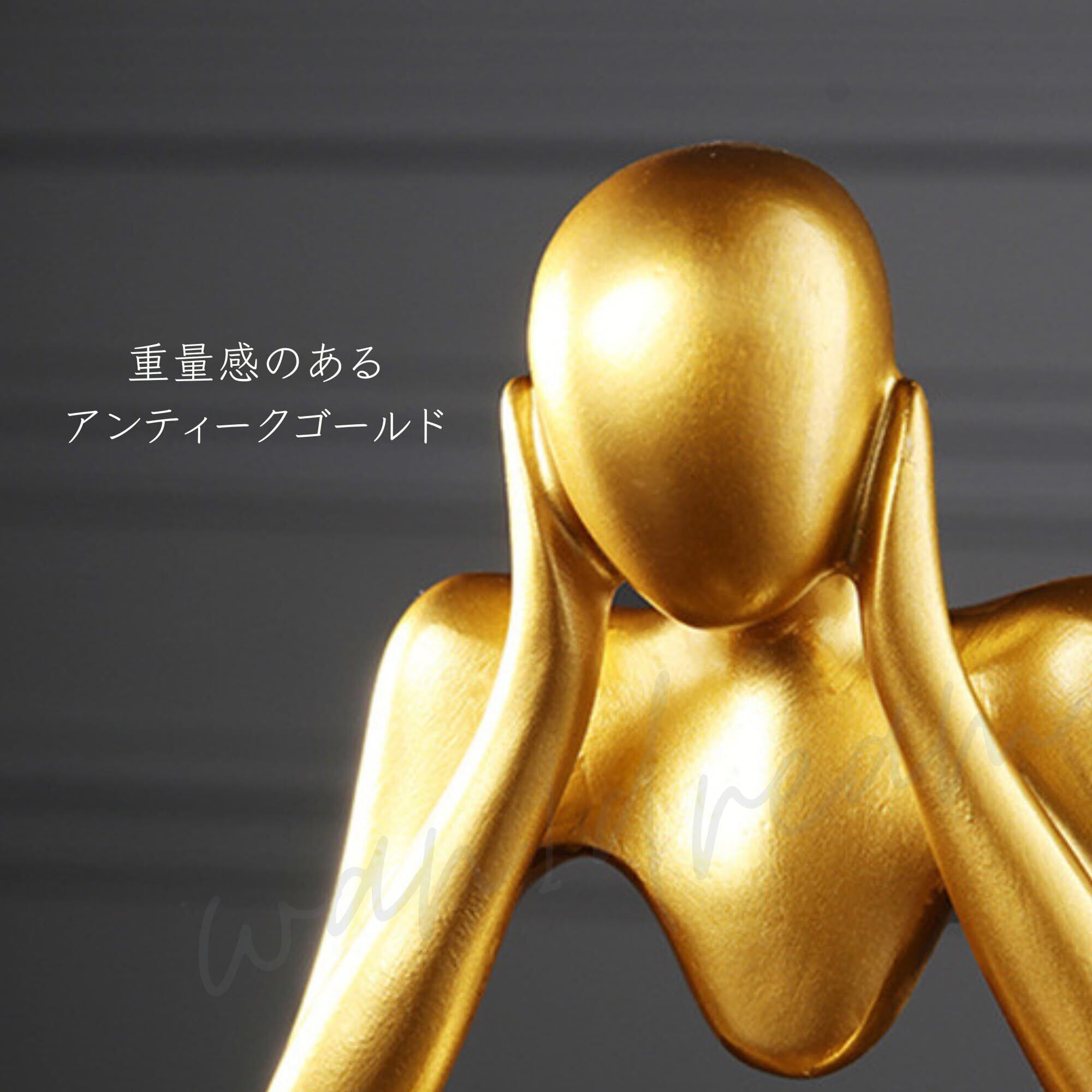 ヒューマンオブジェ【シンキングスタイル-3体セット】 人型オブジェ 置物 抽象アート モダン インテリア 雑貨 デコレーション 彫刻 飾り おしゃれ コンパクト 卓上 リビング 玄関 書斎 考える人 (ゴールド)