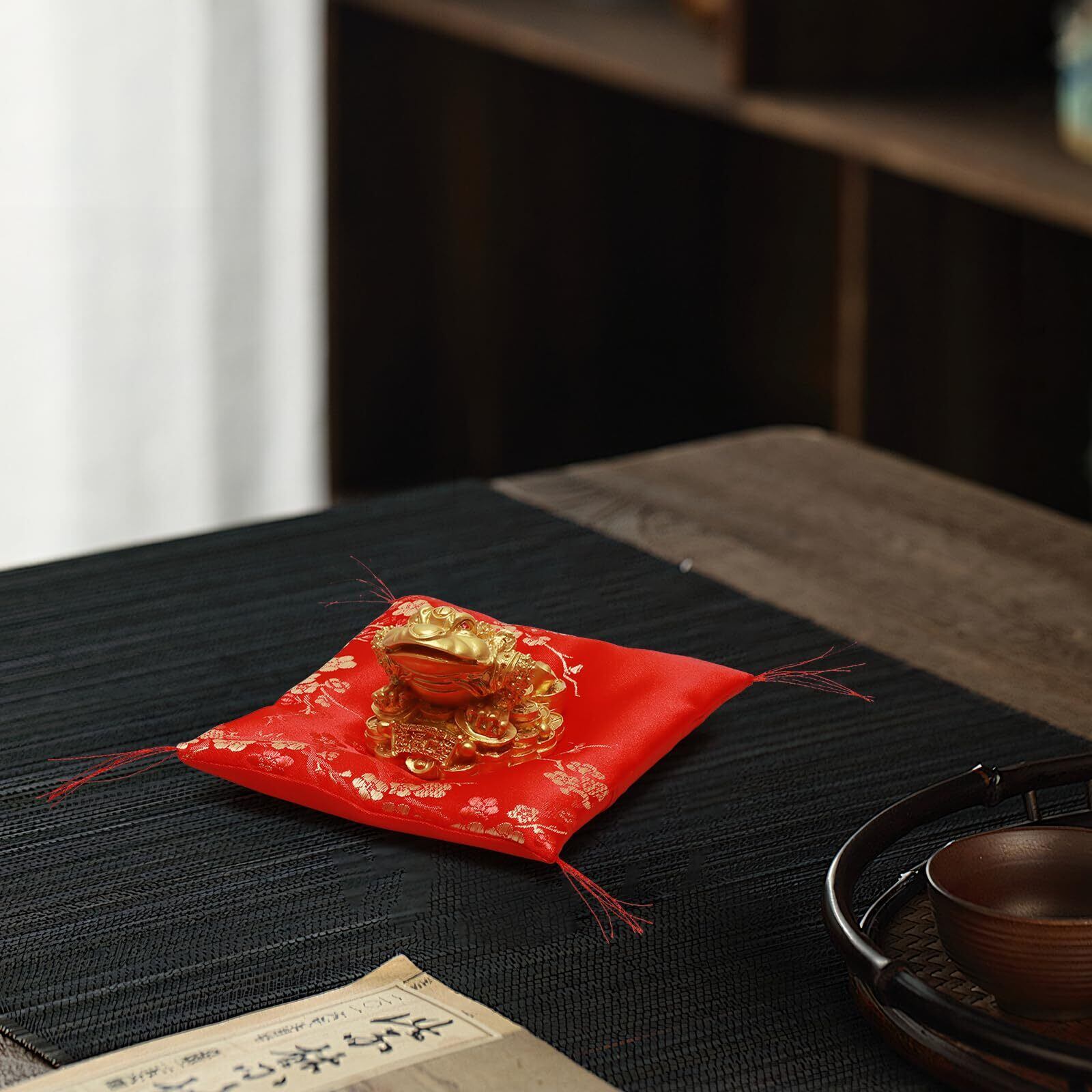 招き猫やリンゴや水晶やミニ布袋さんなどの風水の置物、飾り物用の座布団です。
