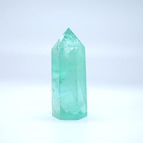 [POWERTONE] 天然蛍石原石ポイント六角柱 緑蛍石 フローライト 天然石 美しいグリーン ホーム装飾石 グッズ クリスマス 新年 プレゼント ヒーリング サンキャッチャー置物 風水 (重さ60-70g 高さ約6.5-9.8cm, グリーン)