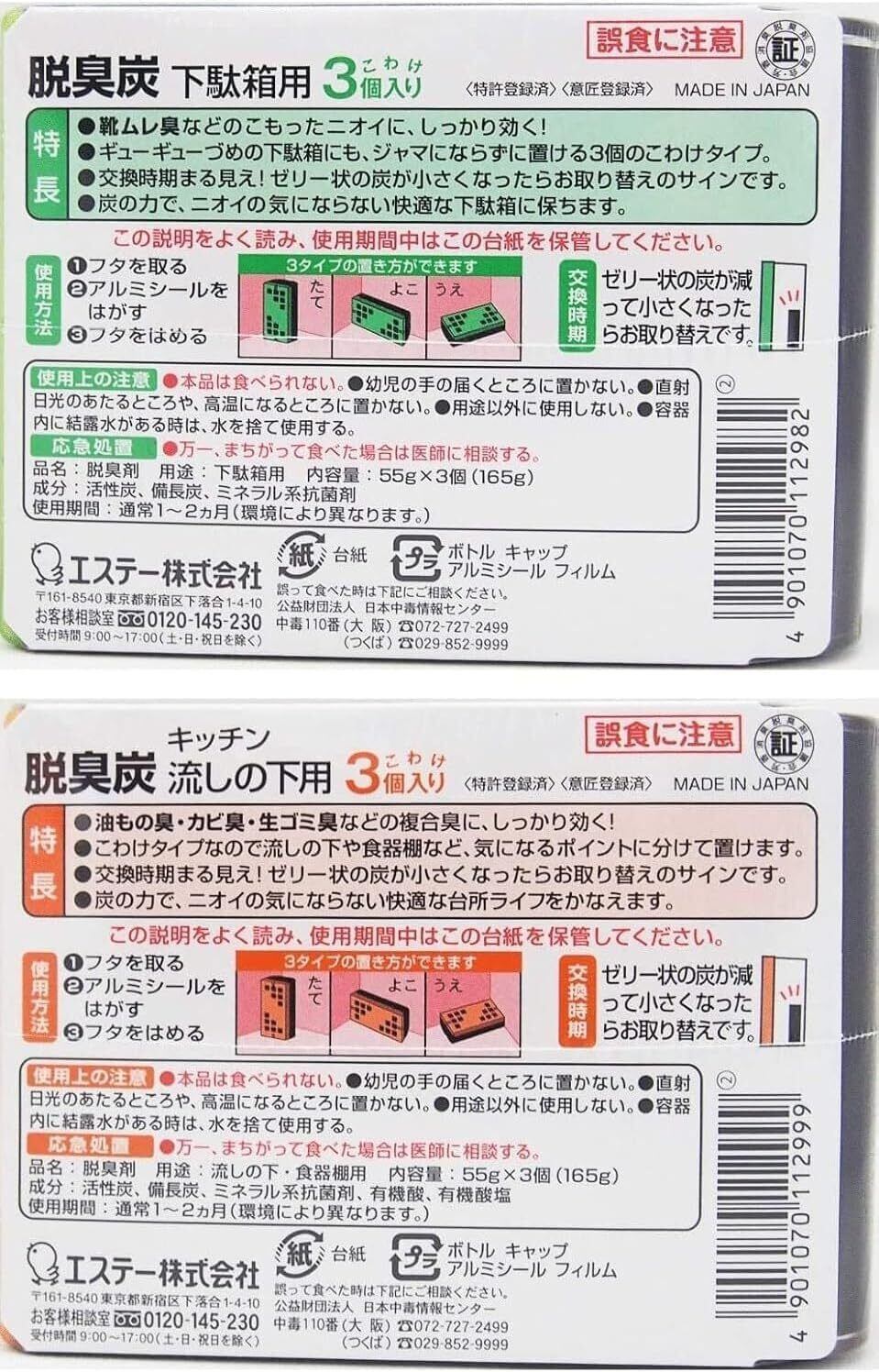 【脱臭炭 アソートセット】こわけ下駄箱用 + こわけキッチン・流しの下用のセットです。
