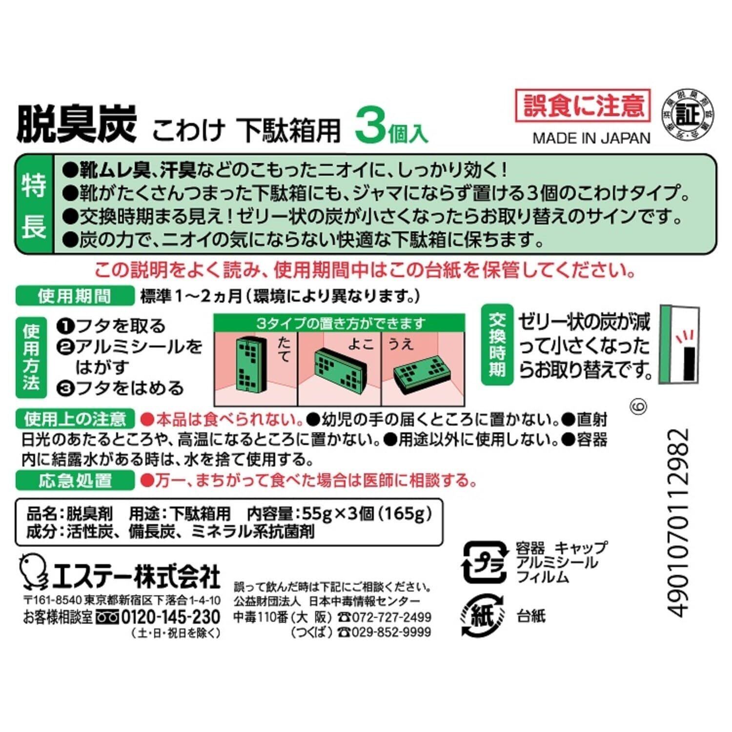 脱臭炭 [まとめ買い] 下駄箱用 脱臭剤 こわけ 3個入×3個パック 備長炭パワー (靴ムレ臭 カビ臭に効く) 下駄箱 玄関 靴箱 置き型 消臭 消臭剤