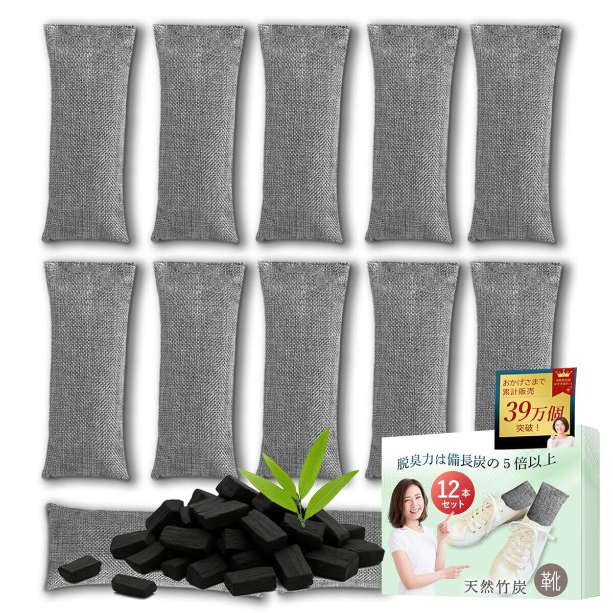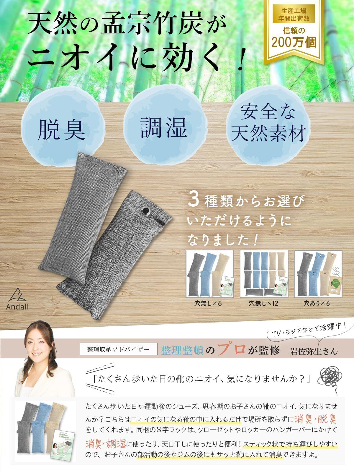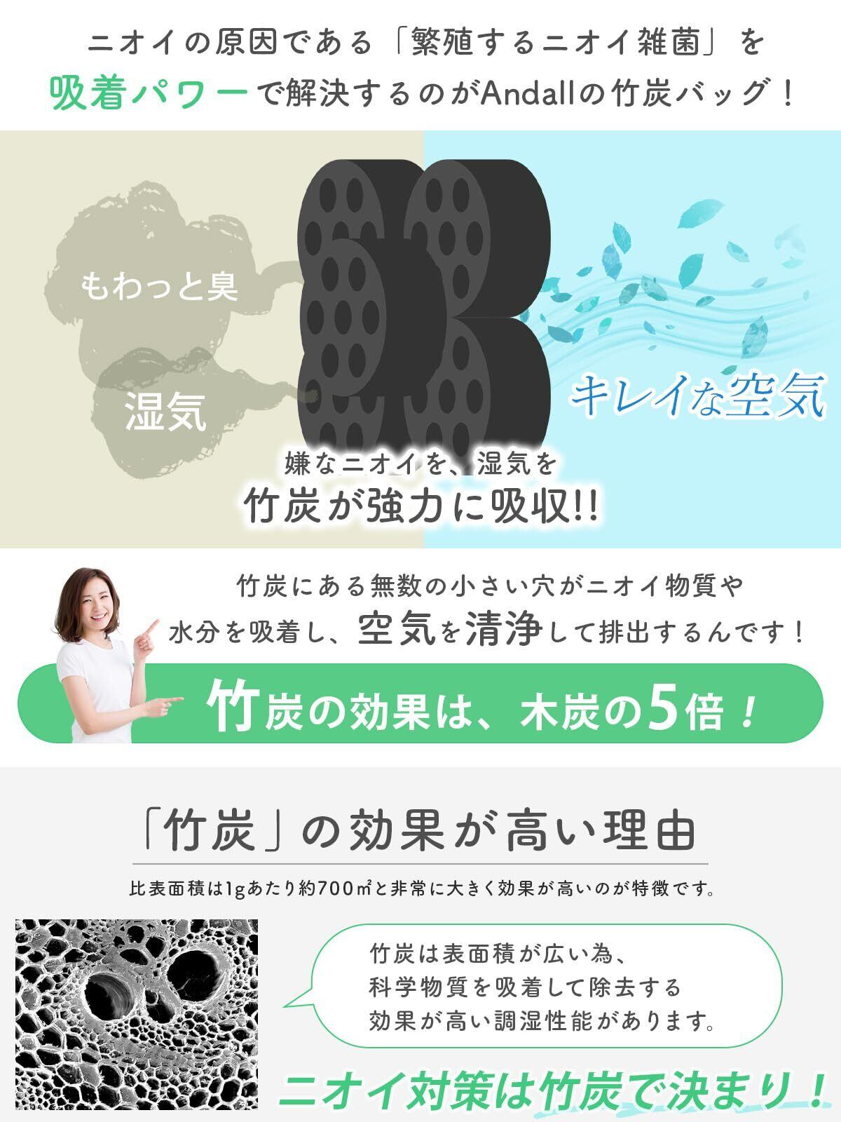 Andall 竹炭 靴 消臭 【脱臭力は備長炭の5倍以上!】 12個セット 増量85g 整理収納アドバイザー推奨 除湿 消臭剤 空気清浄 繰り返し使用可 くつ 脱臭 調湿 革靴 ブーツ 水虫 [アンダル] (グレー12個入り)