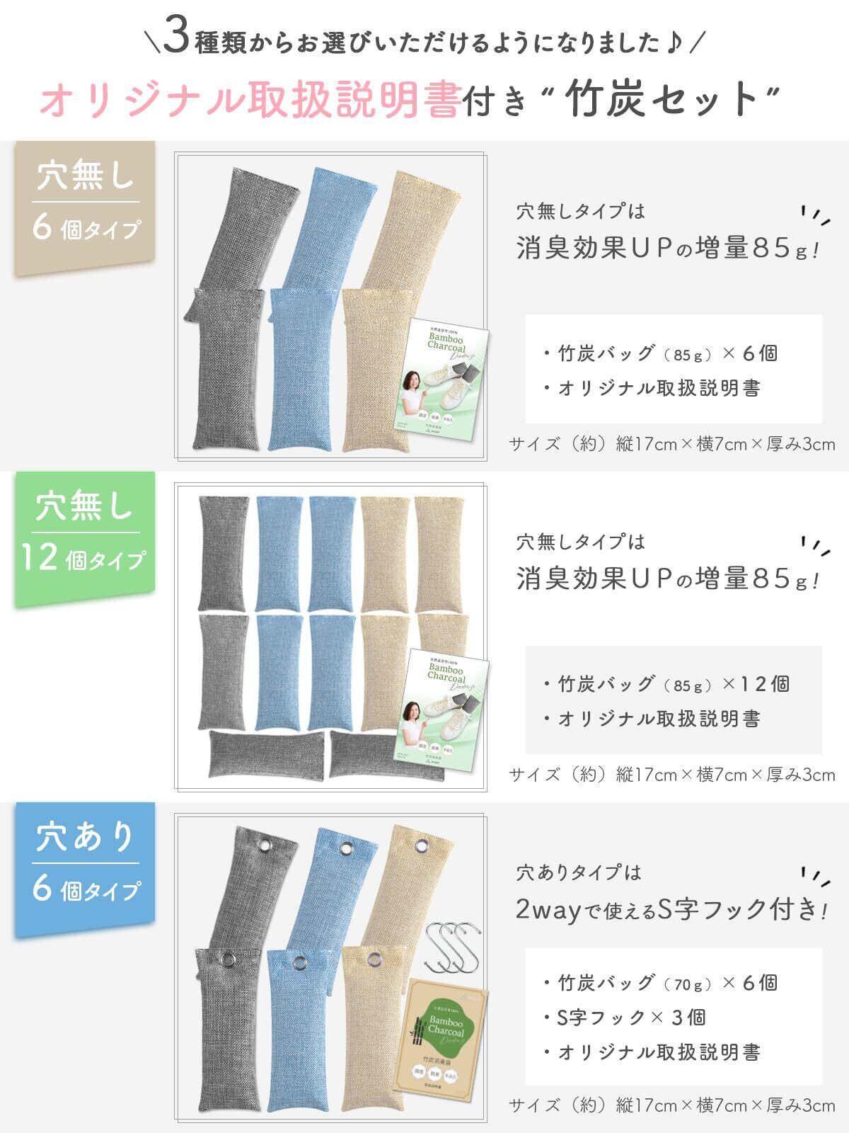 【大容量85g!高品質な竹炭を厳選】空気孔が特別多い構造の竹は備長炭などの木炭と比べ、5倍から10倍もの吸着力で脱臭・調湿効果があり、環境にも大変優しい厳選した竹炭をお届けいたします。ニオイの原因となるバイ菌を活性ケイ酸の働きで抗菌効果を発揮します。足の臭い・生活臭・加齢臭など幅広い臭いに対して効果があります。通常の靴用竹炭最大級の85gを12本セットでお届けいたします。