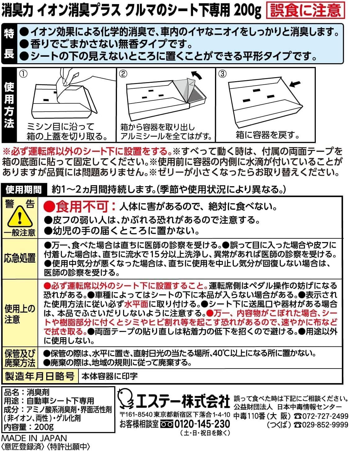 【用途】消臭芳香剤 自動車シート下専用