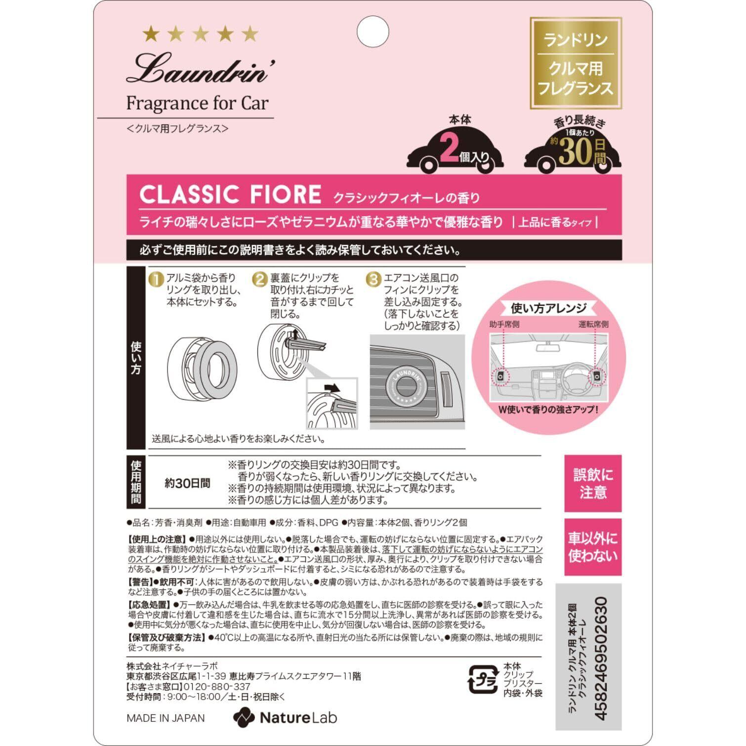 ランドリン 【2個入り】 車用 芳香剤 [クリップタイプ] 消臭 クラシックフィオーレ