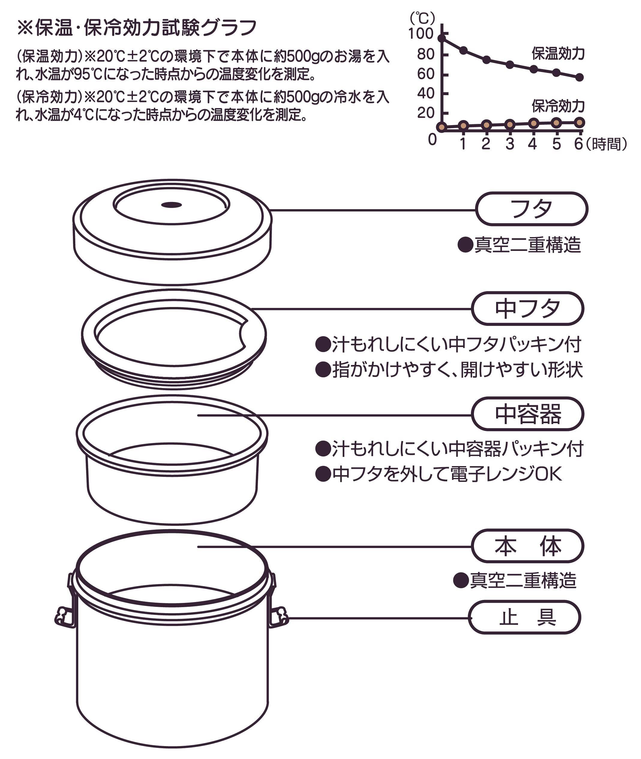 材質:本体・フタ:ステンレス鋼、中容器・中フタ:ポリプロピレン、パッキン:シリコーン、底板:エラストマー、止具:ステンレス、使用抗菌剤の種類:無機抗菌剤