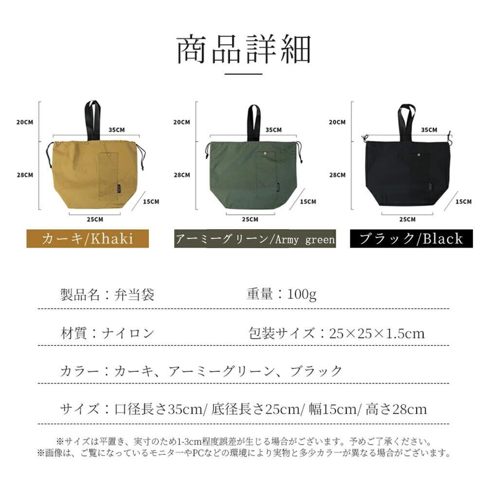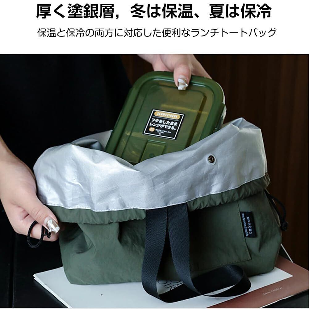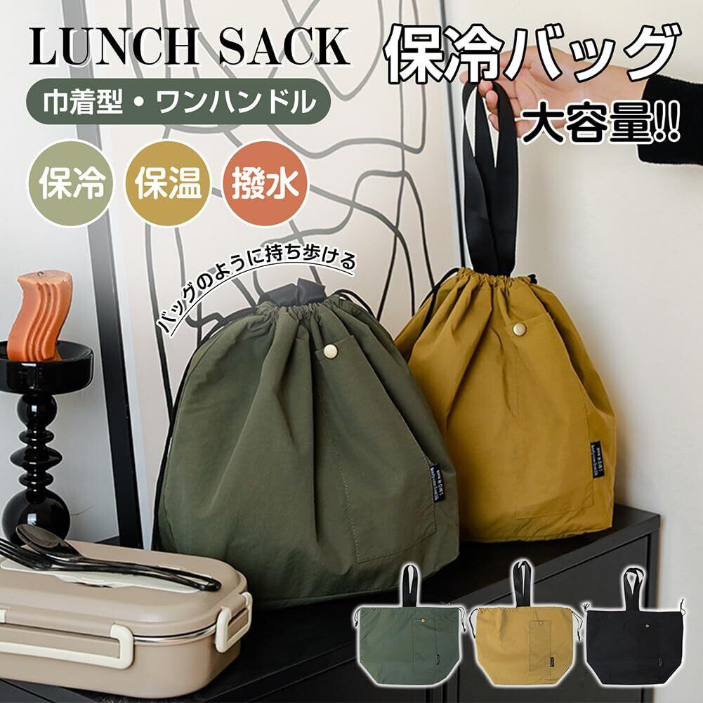 [GOKOU] 保冷 お弁当袋 ランチ 巾着袋 巾着ランチバッグ 保冷 保温 持ち手付き お弁当バッグ おしゃれ 手提げ 撥水 消臭 抗菌 大容量 軽量 男女兼用 通勤 通学 (ブラック, M)